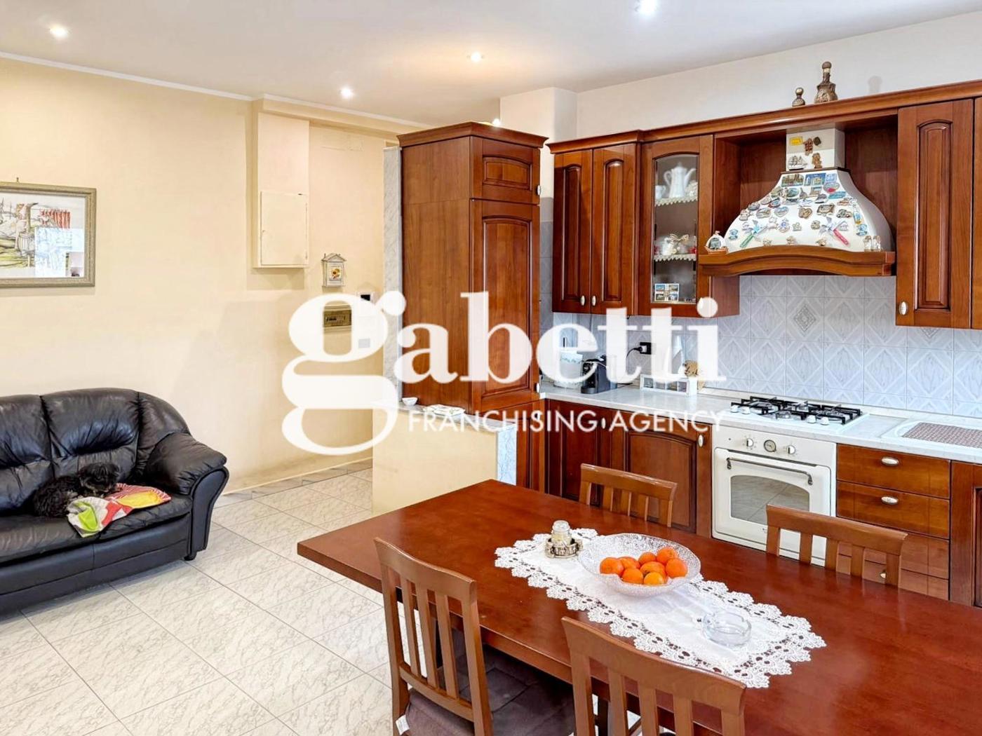 Entrando nella zona di ingresso che conduce verso la cucina a angolo cottura e il luminoso salone che crea un ambiente accogliente e funzionale.