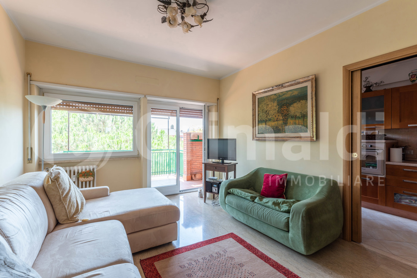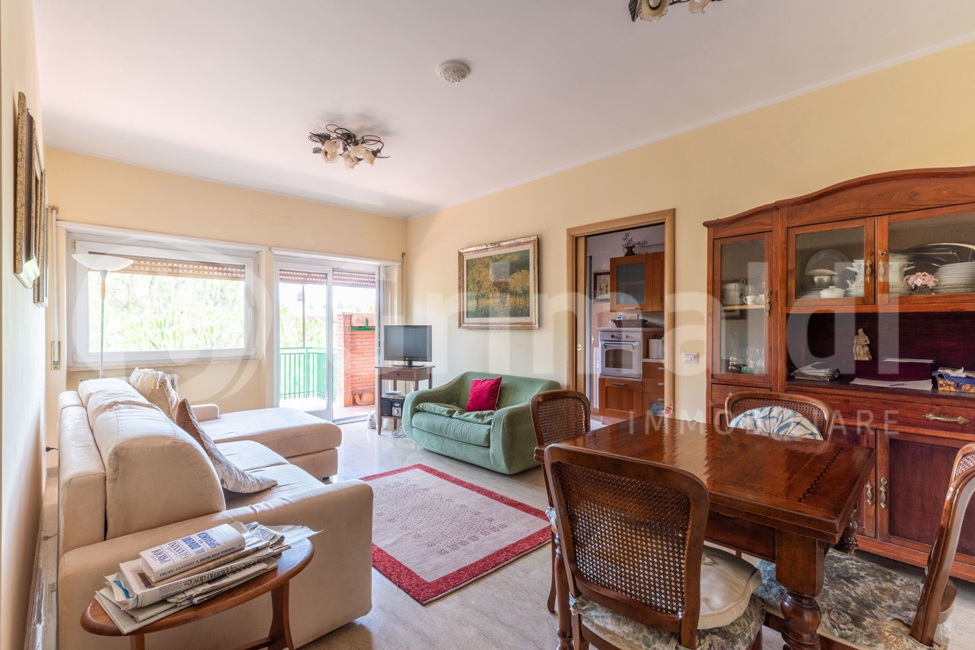L'appartamento gode di una doppia esposizione con affacci sul verde circostante e presenta un'ottima suddivisione degli spazi interni tra zona giorno e zona notte, grazie alla completa e sapiente ristrutturazione eseguita tra il 2010 e il 2011 che ha interessato anche gli impianti elettrico, idrico e termico, con rilascio delle certificazioni, e la sostituzione degli infissi.