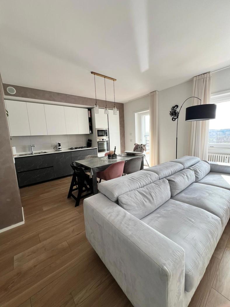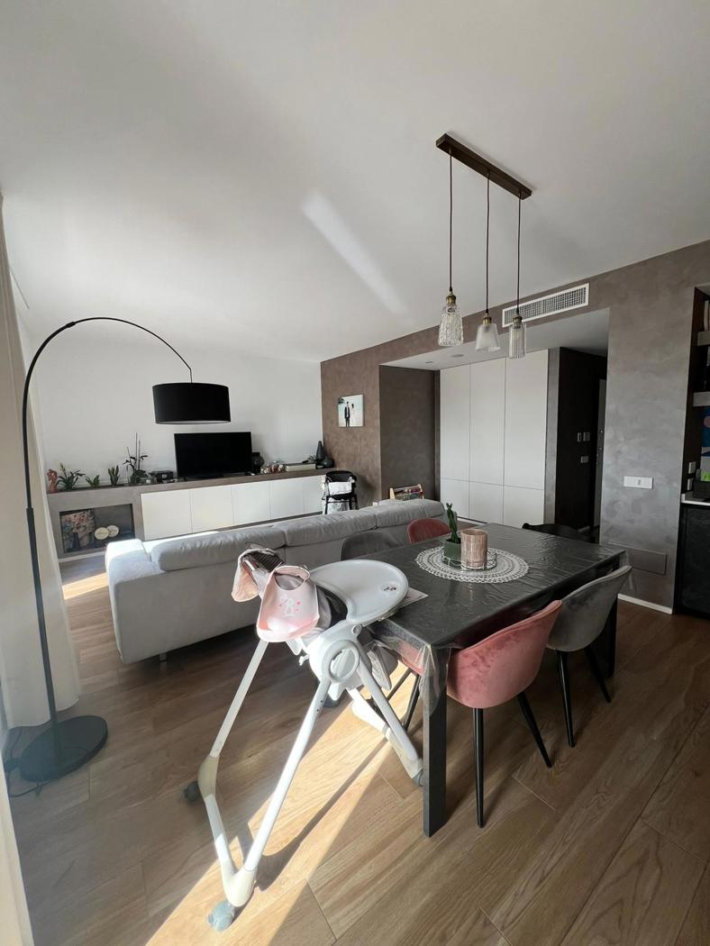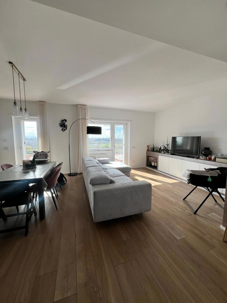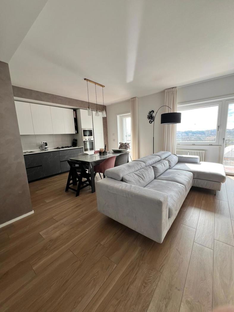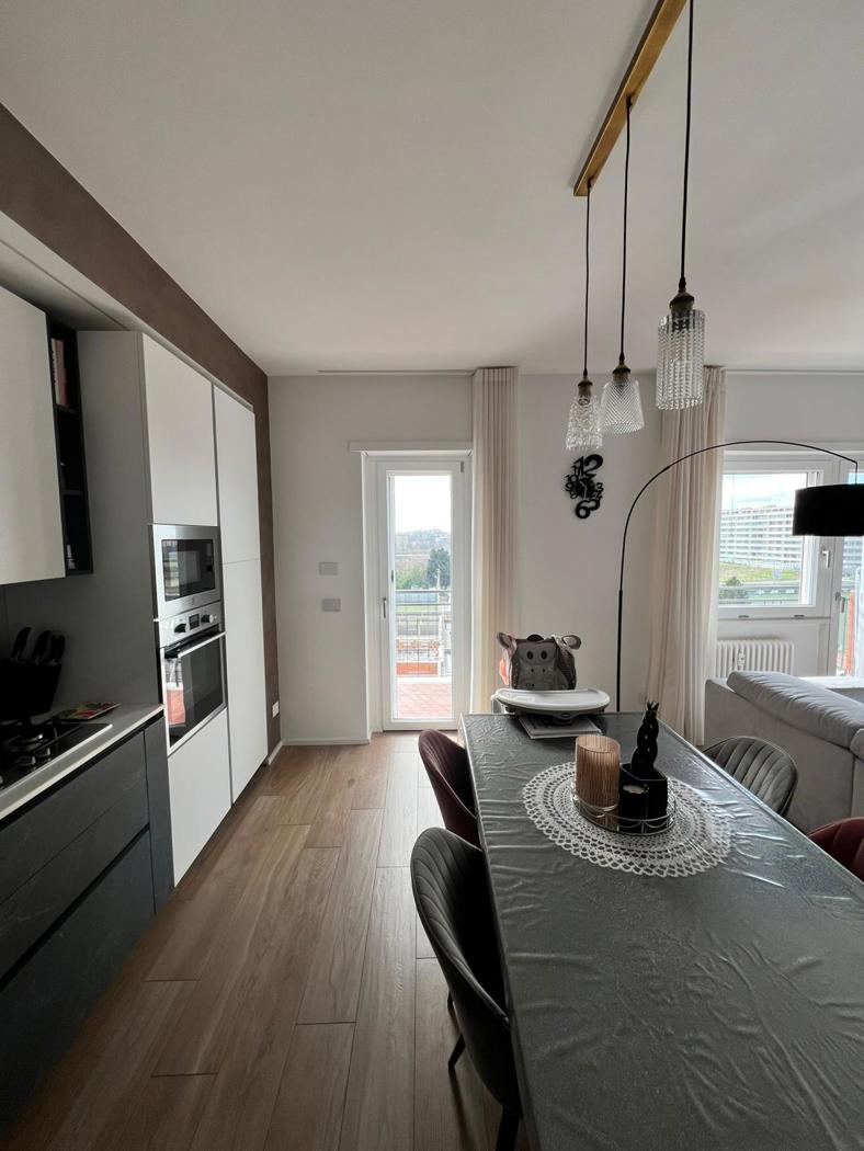 L'appartamento gode di finiture di ultima generazione, domotica, infissi doppio vetro e pvc, esposizione sud, armadi a muro, impianto centralizzato, porta blindata, allarme telecamere, sistema di climatizzazione tutta casa, impianto surround, gres effetto legno, Portiere tutto il giorno condominio 250 al mese compreso di acqua e riscaldamento.