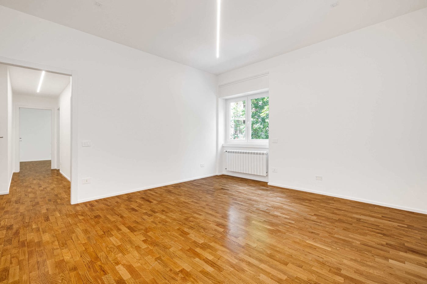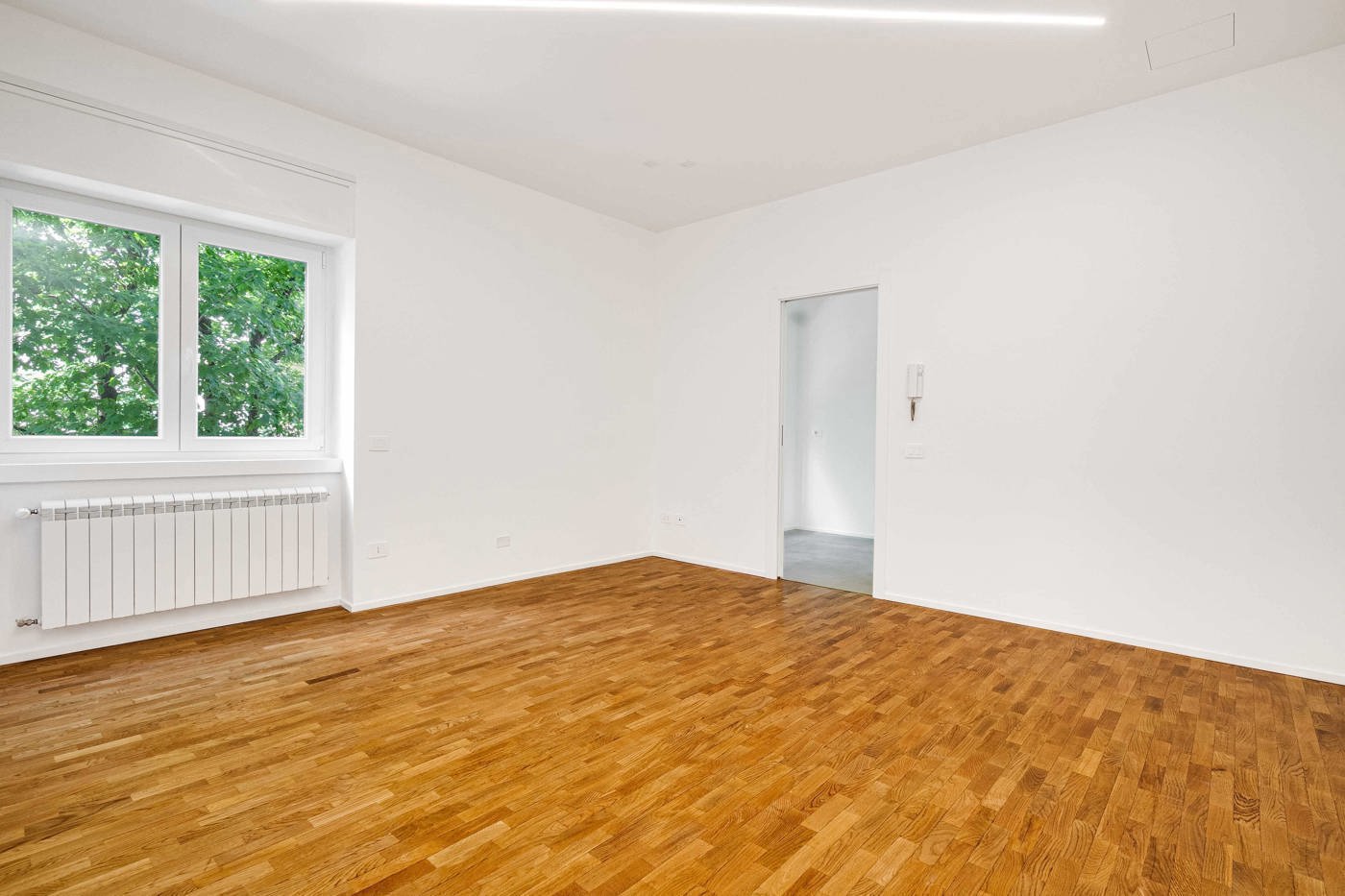 Lintera abitazione stata oggetto di unaccurata ristrutturazione: pavimentazione in parquet di rovere, infissi in PVC con doppio vetro e tapparelle motorizzate, controsoffitti con illuminazione integrata e un bagno completamente rifatto, dal design contemporaneo e funzionale.