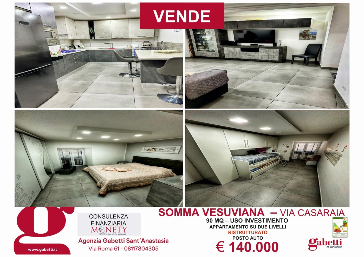 Il prezzo richiesto di 140.000,00. C.E=G. Gabetti Agenzia di SantAnastasia vai Roma 61 SantAnastasia 80048 Napoli Contatti: Cell 3939861595.