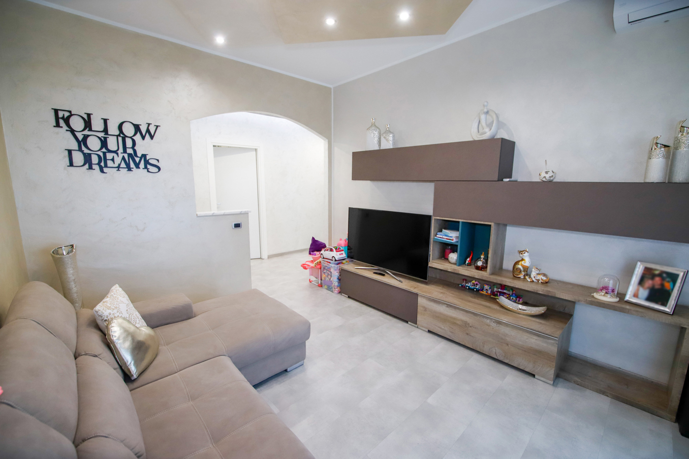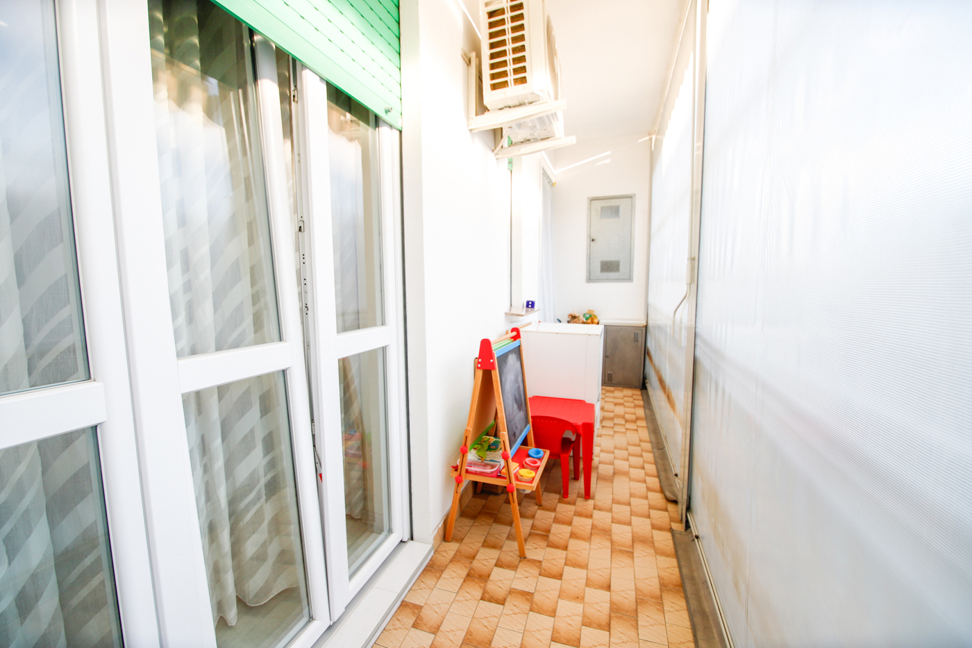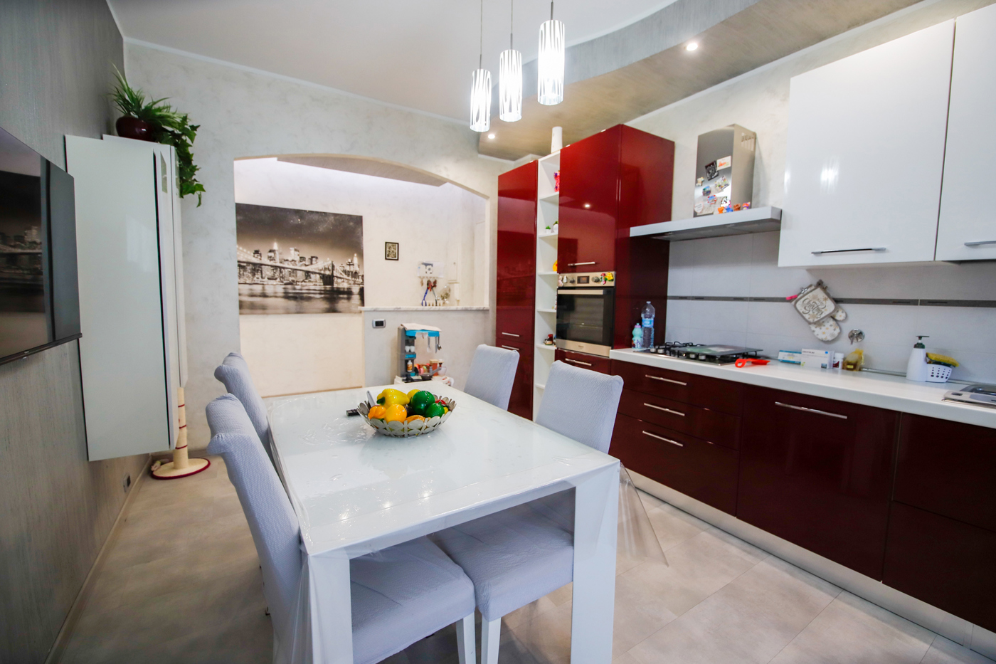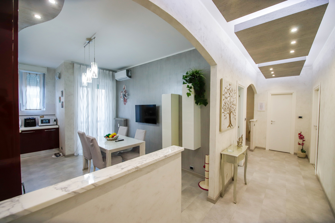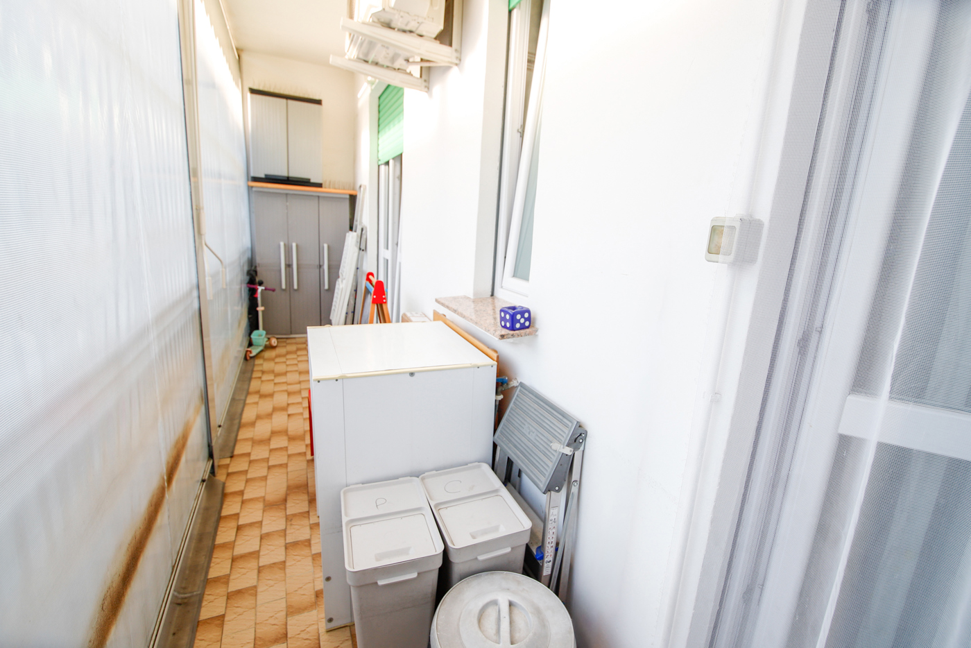 Infissi in pvc doppio vetro con apertura a vasistas in tutte le stanze, climatizzatore con pompa di calore in cucina e nel salotto, tende estate-inverno nel balcone della cucina e porta blindata.