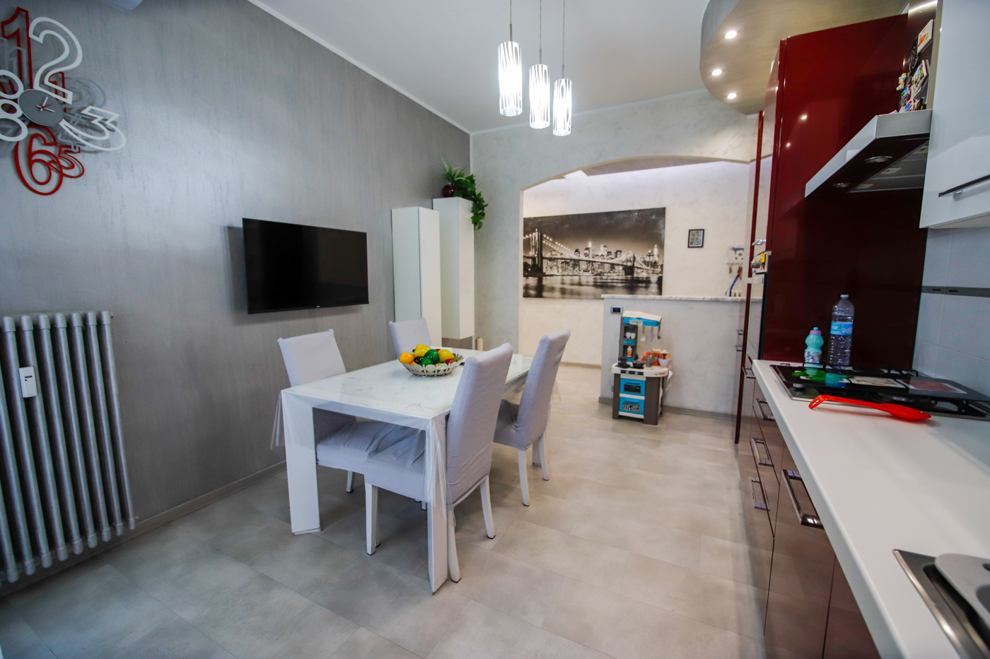 La doppia esposizione ed il piano alto rendono l'appartamento estremamente luminoso ed arioso.