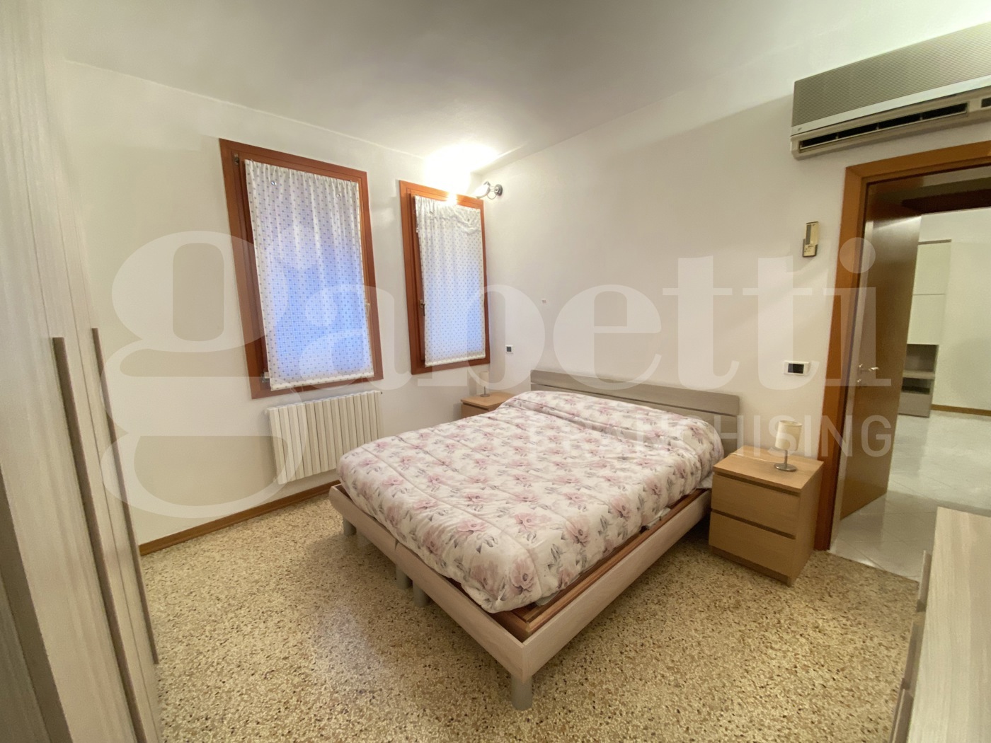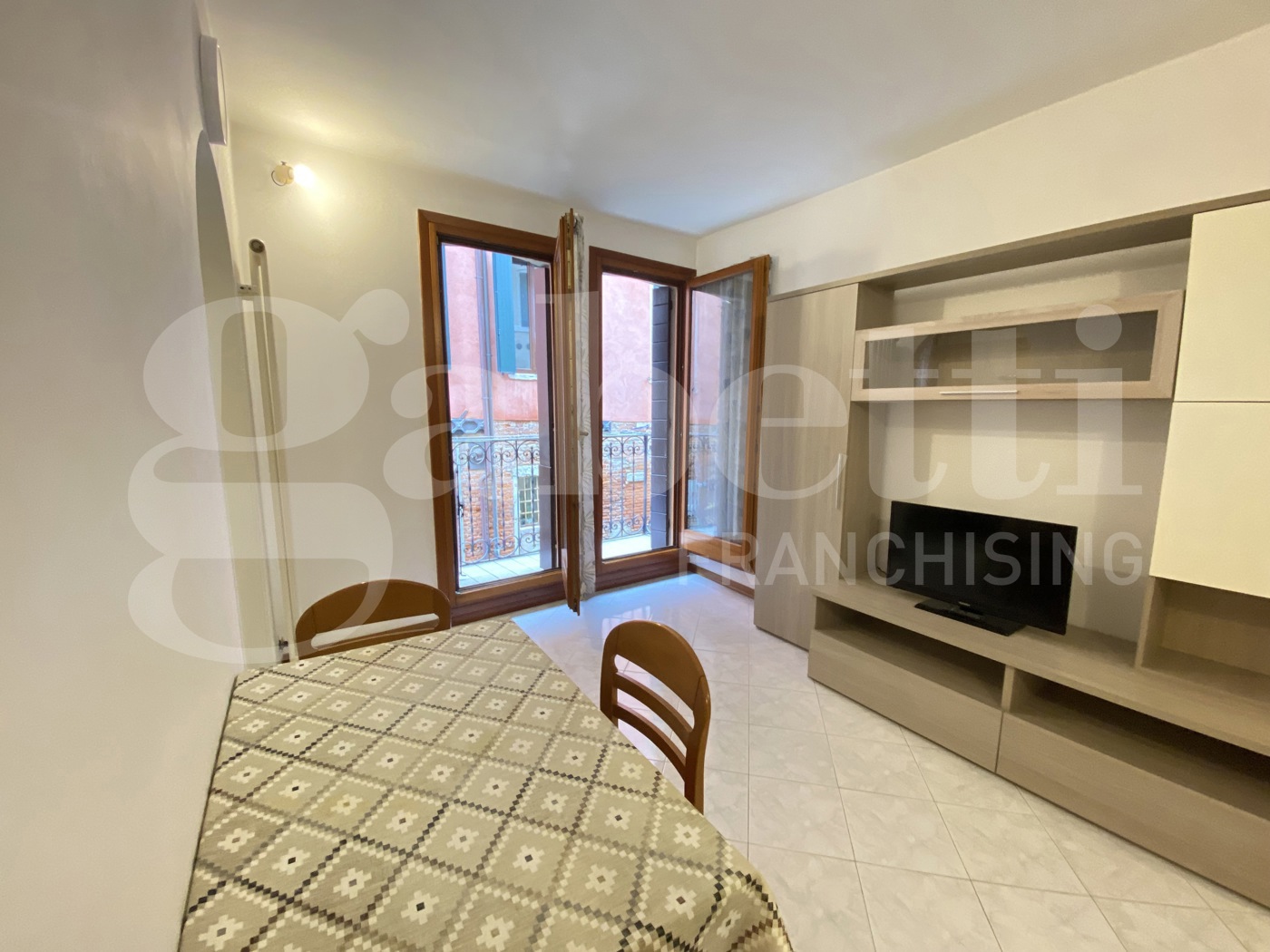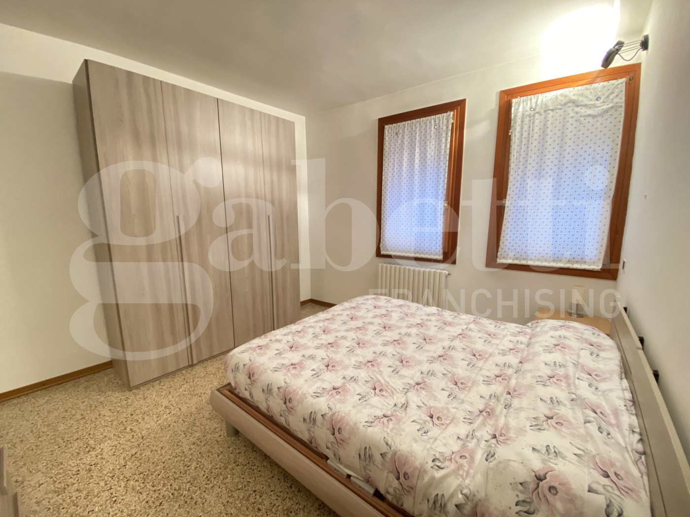 L'appartamento, in ottimo stato di manutenzione, composto da ingresso, soggiorno con zona cottura separata e poggiolo con vista su rio, due camere matrimoniali, bagno e ripostiglio.