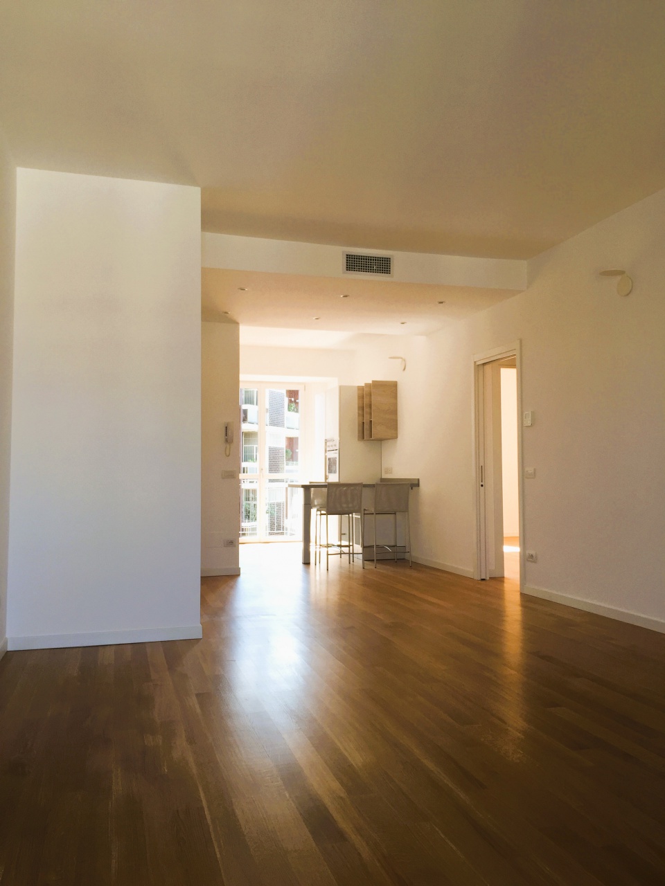 La proprietà è composta da ingresso, soggiorno con cucina a vista, due camere da letto, disimpegno, doppi servizi e due ampi balconi.
