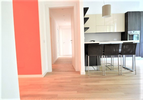 La residenza è composta da un ampio soggiorno con moderna cucina Febal a vista, due camere da letto, doppi servizi di cui uno en suite completamente arredati, ripostiglio e balcone.