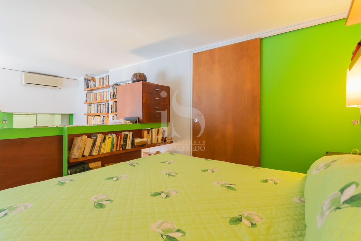 Seconda camera sopraelevata: raggiungibile con quattro gradini dal soggiorno, attualmente arredata come camera ma adattabile a studio o zona relax.