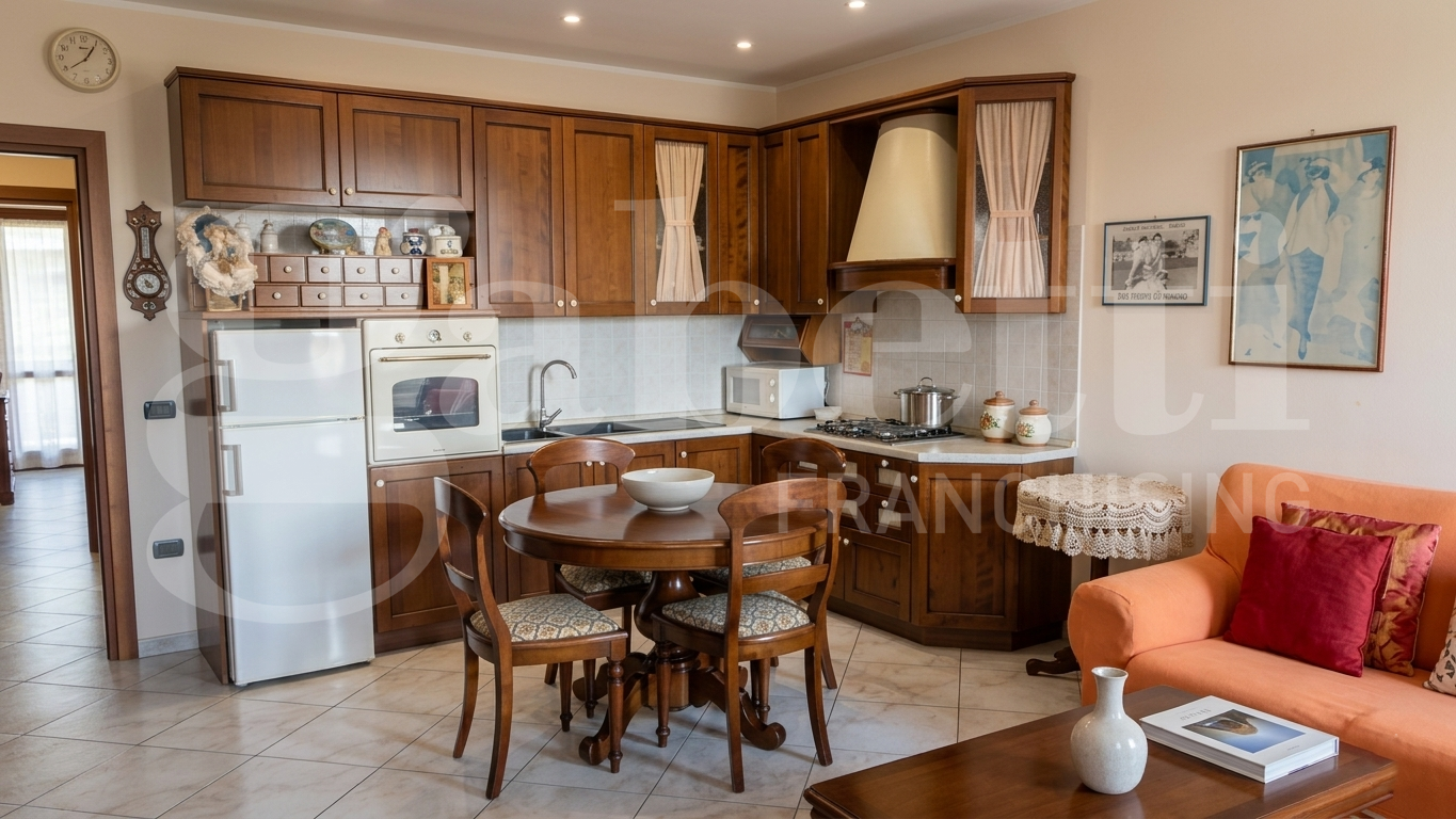 L'abitazione si distingue per una distribuzione funzionale degli spazi, che comprendono un soggiorno luminoso con angolo cottura, un pratico ripostiglio, una camera matrimoniale, una camera singola e il bagno.
