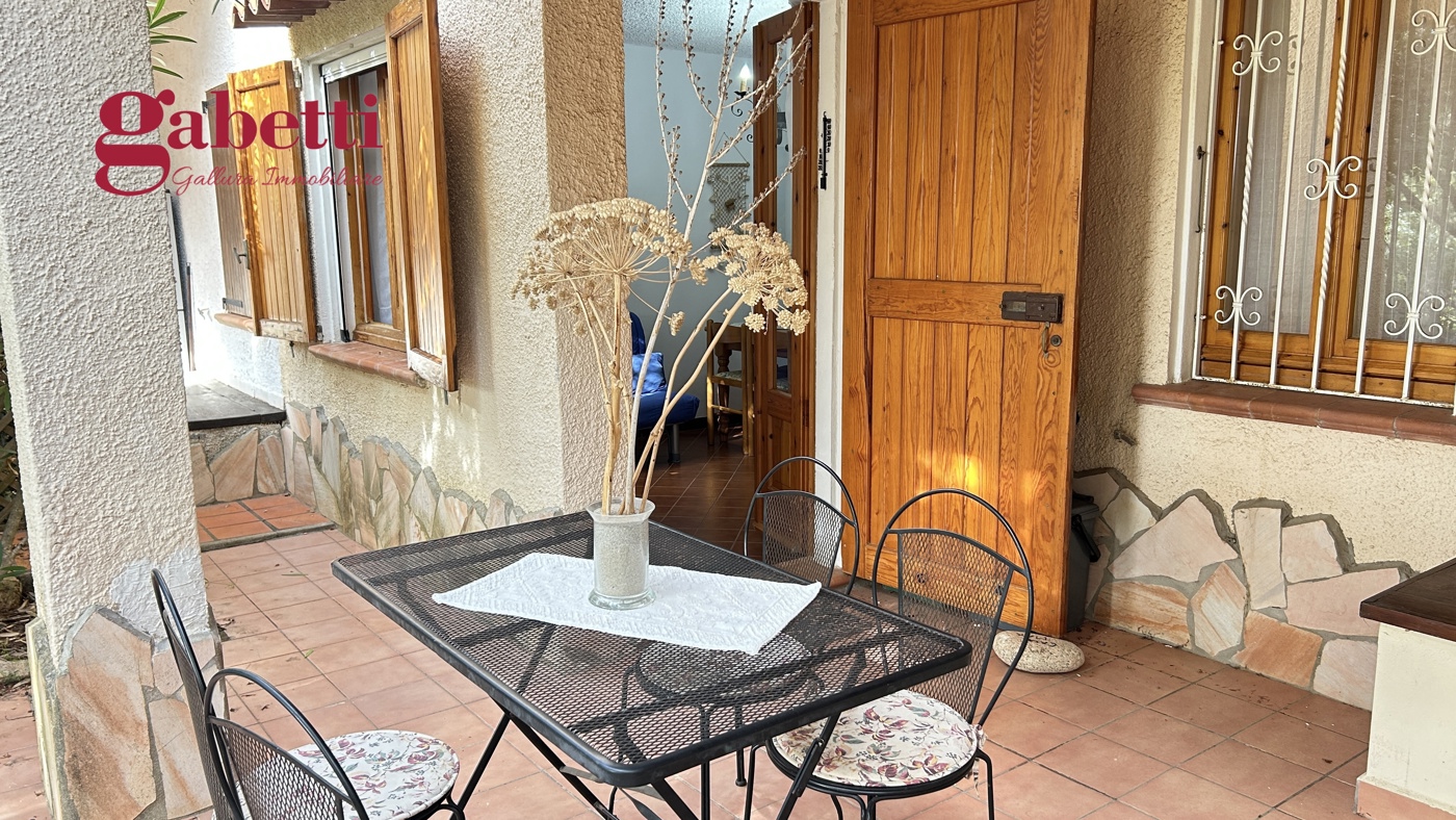 Gli spazi interni sono ben distribuiti e funzionali: una luminosissima zona living, una cucina separata perfettamente organizzata, due accoglienti camere da letto e un bagno in buono ***.*******.** veranda coperta, ampia e riparata dai venti, rappresenta il vero cuore della casa un ambiente ideale per pranzi, cene e momenti di convivialit allaperto, immersi nella quiete e nel verde del villaggio.