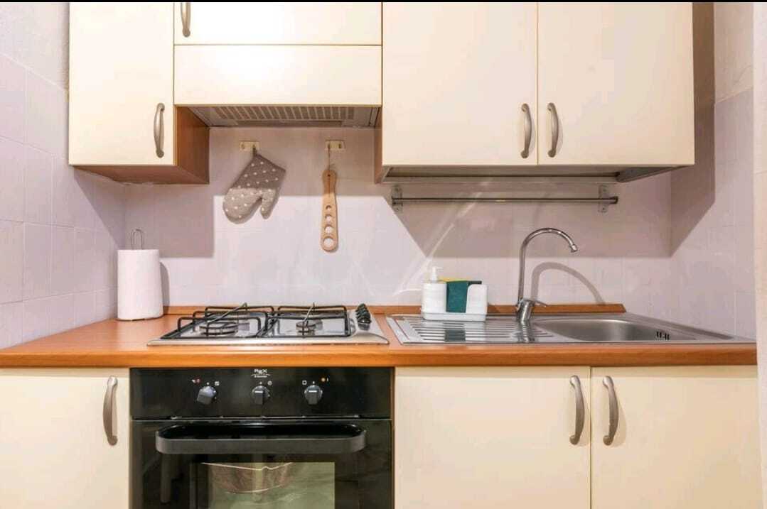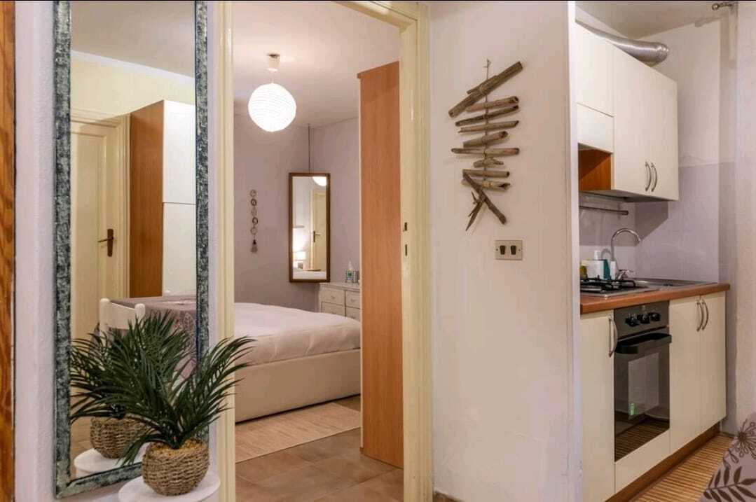 Gli interni accolgono in un luminoso soggiorno con angolo cottura a vista, finestrato e dotato di climatizzatore, perfetto per momenti di relax.