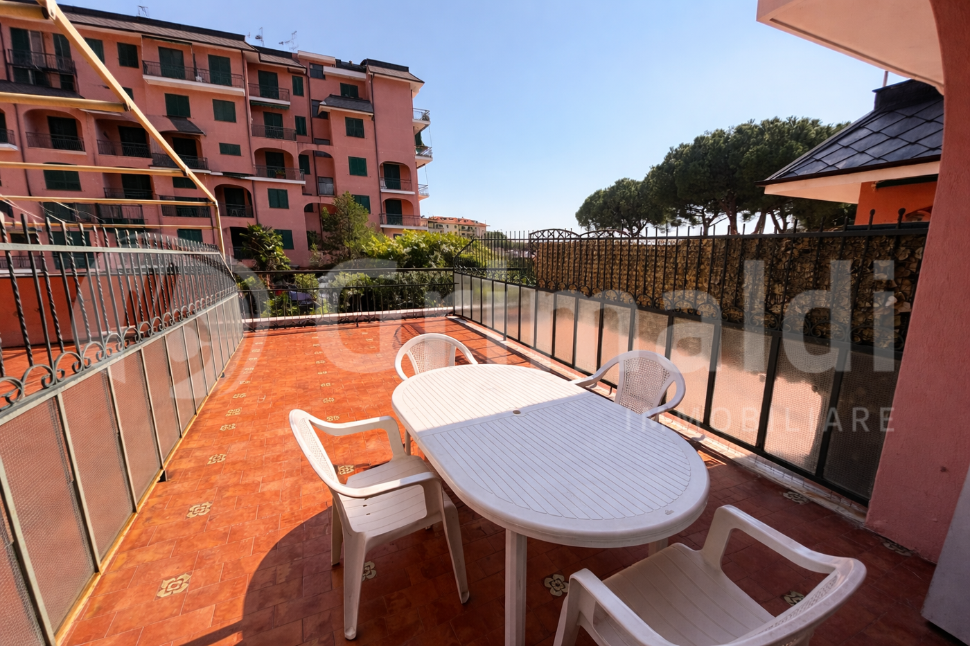 L'appartamento cos composto: ingresso, soggiorno con uscita su terrazzo di circa 24 mq (con affaccio interno e dal quale si gode della vista diretta del mare), angolo cottura, due ampie camere matrimoniali e servizio con balconcino.
