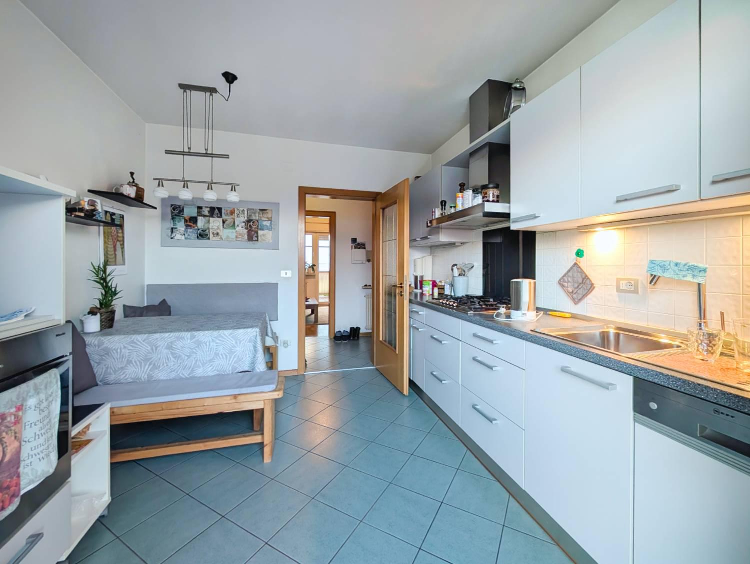 La cucina abitabile ha il suo balcone, cos come la camera da letto principale e la seconda camera: qui ogni mattina inizia con lo sguardo libero e un respiro profondo.