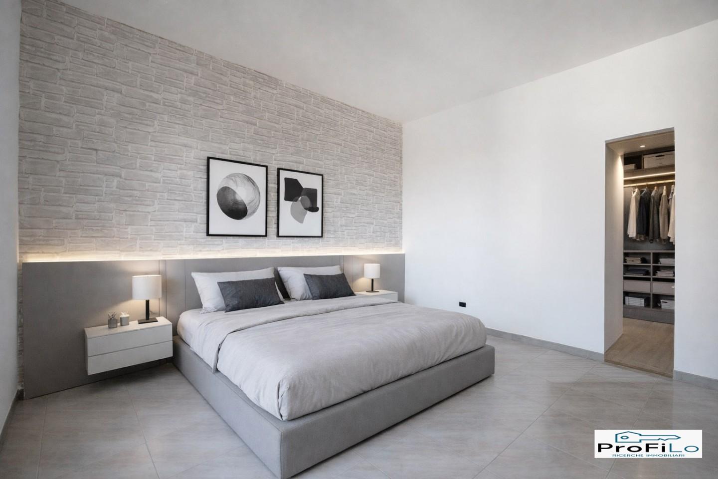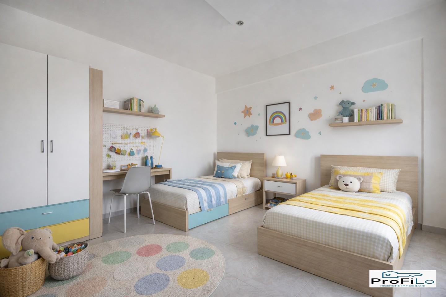 Lappartamento è ubicato al quarto piano in uno stabile di sette piani con ascensore, ed è composto da: ingresso con ampio soggiorno, camera da letto matrimoniale con cabina armadio, altra camera da letto, cucina abitabile, due bagni, due balconi, pertinenziale vano deposito a piano interrato, posto auto in autorimessa a piano interrato, posto auto in area recintata scoperta a piano terra.