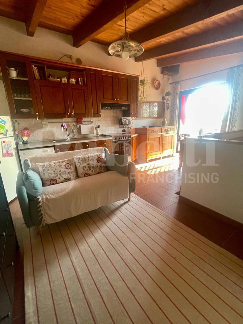 Al primo livello: soggiorno, due camere, cucinino, bagno, balcone e scalinata interna.