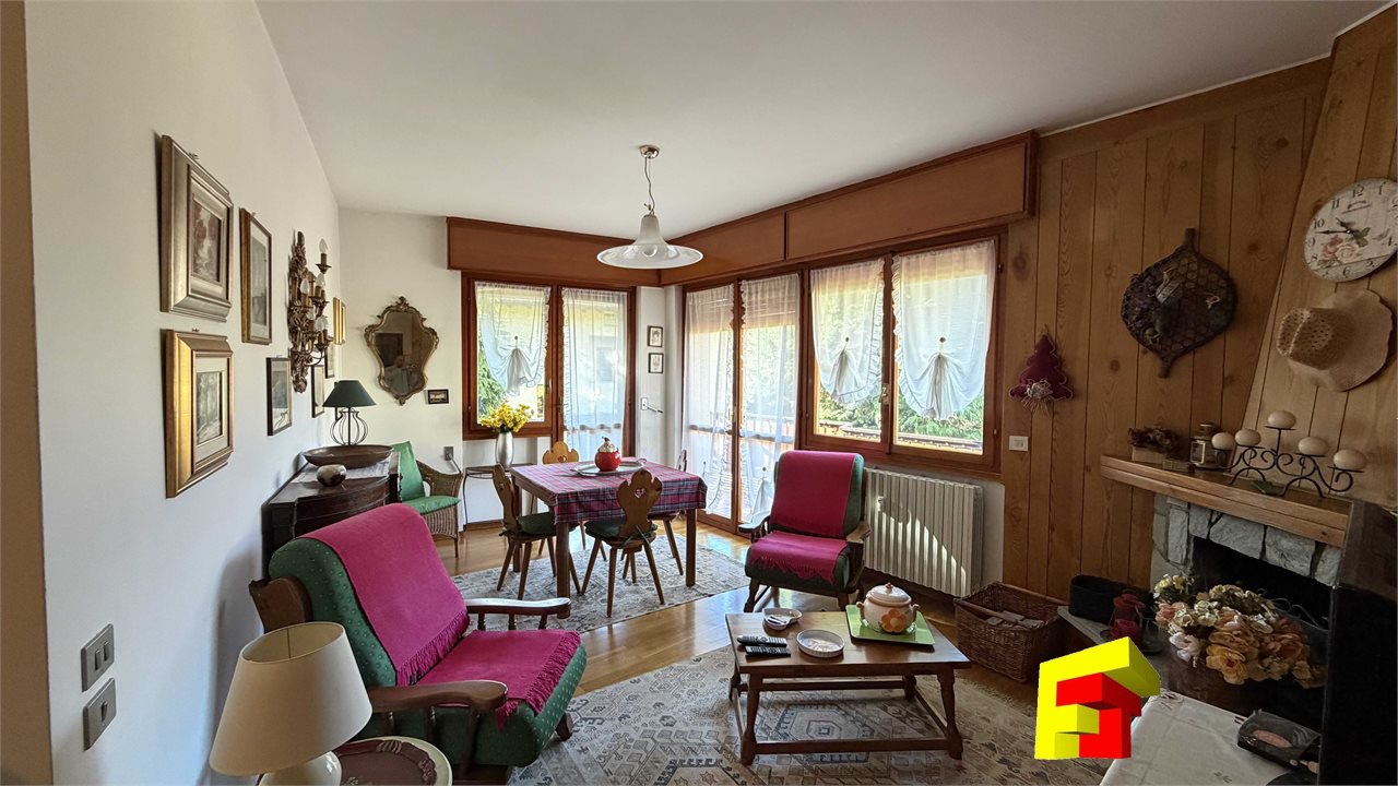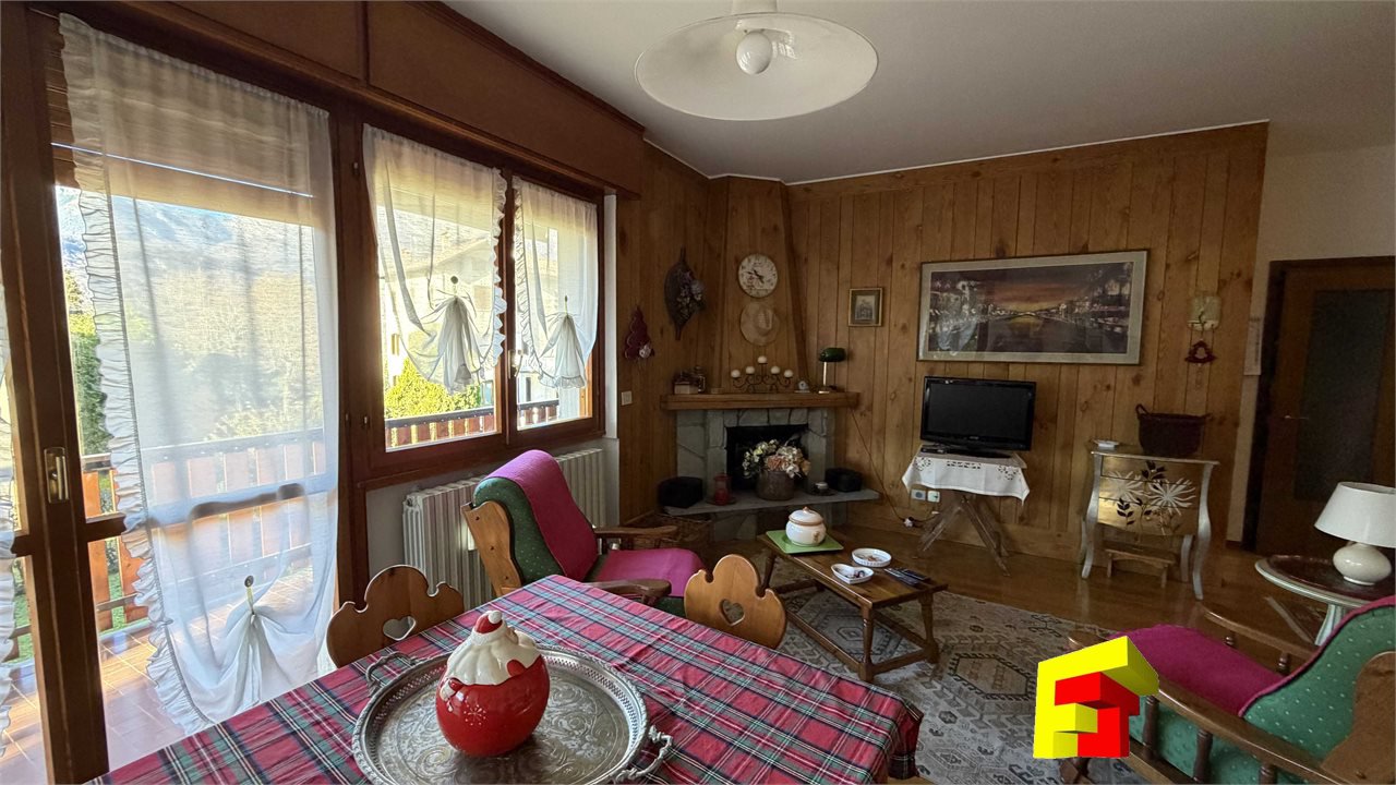 Barzio, ampio trilocale con vista Grigna, caminetto a legna e box al piano interrato.\nCostruito nel 1972, l'immobile si trova in ottime condizioni ed è dotato di un accogliente camino per le serate invernali.\nCon una superficie di 100 mq, l'appartamento dispone di 3 locali, soggiorno luminosissimo esposto a ovest con ampio balcone di circa 20 mq e caminetto a legna, cucina finestrata semi abitabile, camera matrimoniale, camera doppia e ampio bagno anch'esso finestrato.\nAl piano seminterrato sono presenti il box e la cantina che completano la proprietà, per un totale di quasi 130 mq commerciali.\nCondominio dotato di ascensore con partenza dal piano box e cantina e grande giardino comune.\nIl tutto situato a pochi passi dal centro del paese e sulla camminata alta che unisce Barzio a Cremeno.