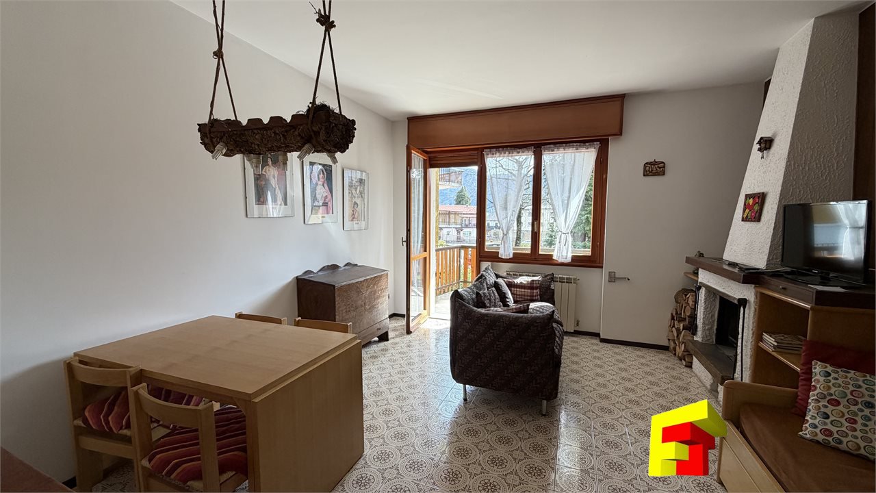 Barzio, Trilocale con caminetto a legna e box al piano interrato.\nCostruito nel 1972, l'immobile si trova in ottime condizioni ed è dotato di un accogliente camino per le serate invernali.\nCon una superficie di 70 mq, l'appartamento dispone di 3 locali, soggiorno molto luminoso esposto a ovest con aterrazzo di circa 6 mq e caminetto a legna, cucina abitabile dotata di portafinestra e piccolo balconcino, camera matrimoniale, camera doppia e bagno finestrato.\nAl piano seminterrato è presente il box che completa la proprietà, per un totale di quasi 82 mq commerciali.\nCondominio dotato di ascensore con partenza dal piano box e grande giardino comune.\nIl tutto situato a pochi passi dal centro del paese e sulla camminata alta che unisce Barzio a Cremeno.