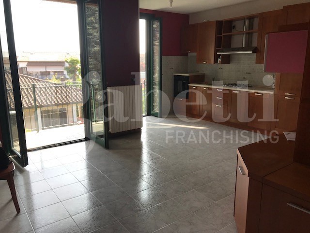 Le condizioni interne sono buone, con una cucina a vista moderna e funzionale.