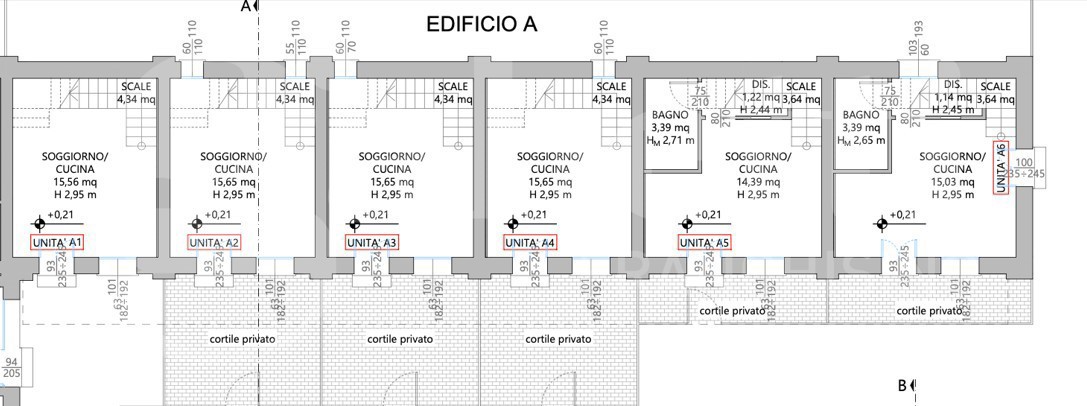 Consegna prevista fine 2025. APP TRILOCALE A1: Sviluppato su due livelli, ingresso su soggiorno con angolo cottura al piano terra e due camere da letto, bagno e balcone al piano primo.