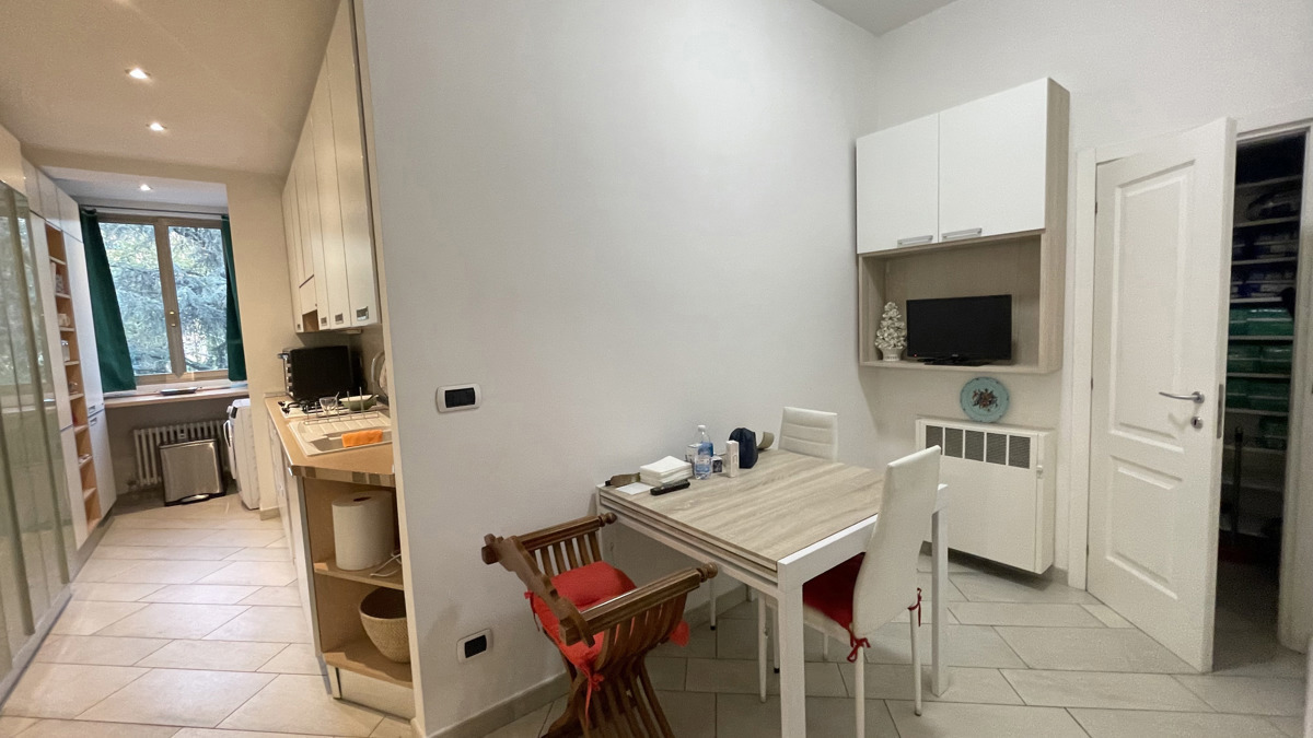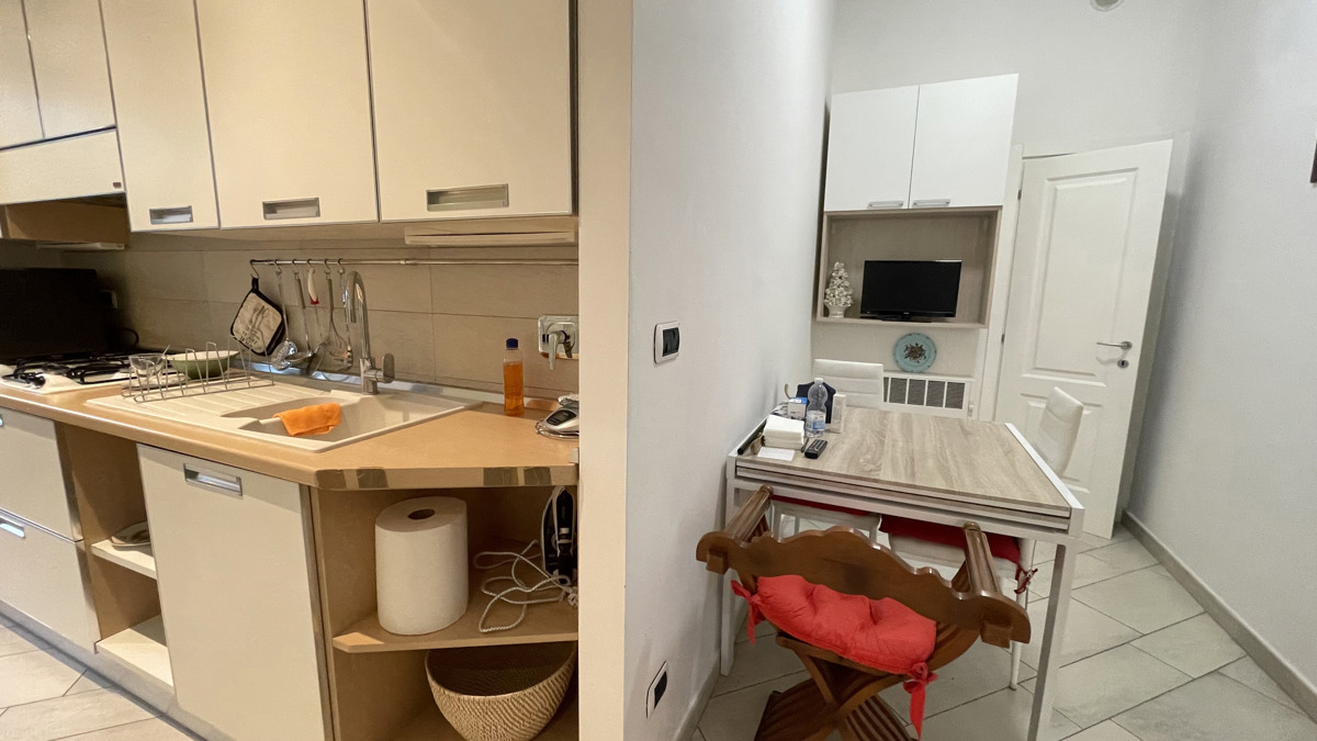 Appartamento totalmente arredato, in ottime condizioni, composto da ingresso su disimpegno, sala da pranzo, cucina, camera da letto, bagno e ripostiglio.