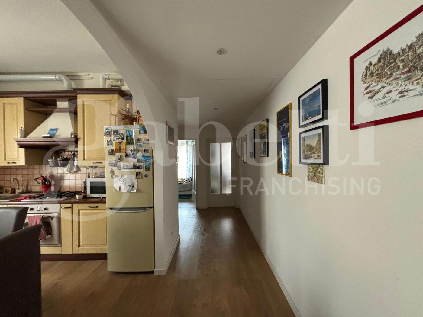 Limmobile, in ottime condizioni interne, composto da: -ingresso su zona giorno con cucina a vista e balcone, -disimpegno, -bagno finestrato, -camera matrimoniale con balcone, -soggiorno (eventualmente utilizzabile come seconda camera). Recentemente sono stati eseguiti lavori di ristrutturazione del bagno, sostituzione della pavimentazione e rifacimento dellimpianto elettrico.