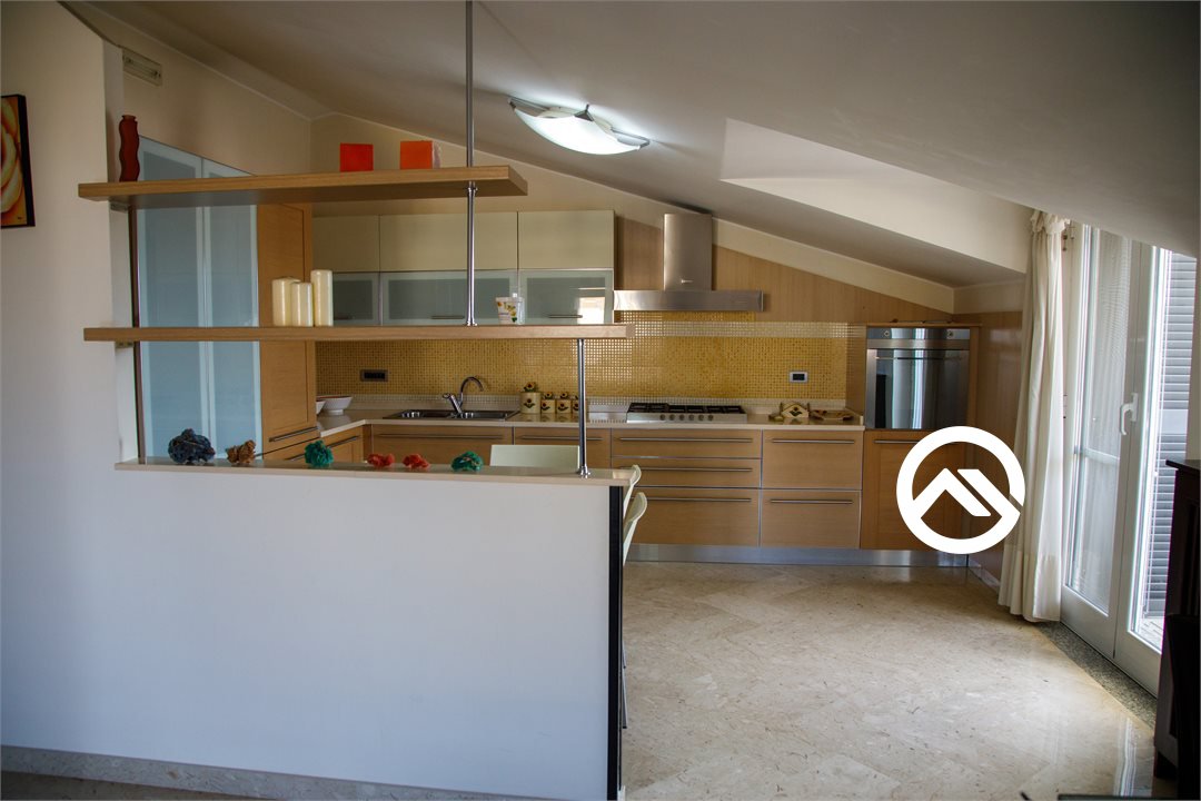 and #127968; Splendida Mansarda di 120mq con Terrazzo Perimetrale - Ottimo Stato\nTitolo: Ampia Mansarda Luminosa con Terrazzo su 3 Lati e Posto Auto - and euro; 220.000\nDescrizione: Proponiamo in vendita un'esclusiva soluzione abitativa situata al secondo e ultimo piano di una palazzina riservata (composta da piano rialzato, primo e secondo). Questa mansarda di 120 mq si distingue per l'ottima distribuzione degli spazi e per la straordinaria luminosità garantita dall'affaccio su tre lati.\nDistribuzione Interna:\nIngresso: Un accogliente disimpegno conduce, attraverso un corridoio ben organizzato, alla zona giorno.\nZona Giorno: Grande salone di rappresentanza e cucina abitabile spaziosa (perfetta per un tavolo da pranzo numeroso).\nZona Notte: Composta da una camera matrimoniale, una cameretta e due bagni rifiniti.\nVivibilità: L'altezza massima di 2,75 metri e la minima di 1,70 metri rendono ogni ambiente perfettamente fruibile e facile da arredare, mantenendo il fascino unico del soffitto mansardato.\nDistribuzione esterna:\nSpazi Esterni e Plus: Il punto di forza assoluto è il terrazzo molto ampio che, insieme ai balconi, circonda l'appartamento su tre lati, offrendo una vista aperta e uno spazio esterno ideale per vivere momenti di relax all'aperto.\nDettagli Tecnici:\nPrezzo: 220.000 and euro;\nStato: Ottimo (abitabile da subito).\nRiscaldamento: Autonomo.\nPertinenze: Posto auto incluso.\nPrivacy: Ultimo piano, nessuna abitazione sovrastante.\n - Maggiori Dettagli: Cancello elettrico, Impianto antifurto, Porta blindata, Terrazzo, Terrazzo a Livello, Sistema di allarme, Luci di Emergenza, Tripla Esposizione, Tende da Sole, Balconi, Climatizzato, Riscaldamento autonomo, Caldaia, Citofono, Esposizione esterna, Cucina Abitabile, Posto auto, Vista panoramica, Infissi alluminio, Aria condizionata Contatta l'inserzionista