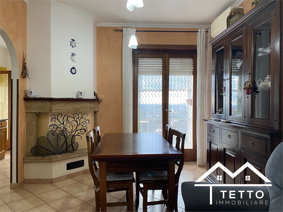 Cantalupo in Sabina - Appartamento panoramico con terrazzo, giardino privato e posto auto\n\nIn posizione comooda e panoramica, proponiamo in vendita un luminoso appartamento situato al secondo piano di uno stabile degli anni '50 (senza ascensore), in buono stato di manutenzione.\n\nL'abitazione si distingue per gli ampi spazi interni e per l'eccellente luminosità.\nL'ingresso conduce al salone con zona pranzo, impreziosito da camino e accesso al terrazzo panoramico con affacci aperti sulle vallate dell'entroterra sabino e sul Monte Soratte.\n\nLa cucina, separata e non abitabile, è collegata a un pratico locale ripostiglio/centrale termica con balconcino.\nUn comodo disimpegno con armadio a muro introduce alla zona notte, composta da due camere matrimoniali e doppi servizi.\n\nCompletano la proprietà:\n\n- posto auto\n\n- cantina al piano S1\n\n- giardino privato di circa 30 mq, recintato, all'interno dell'area verde condominiale, ideale come spazio relax, area hobby o zona giochi\n\nSoluzione ideale per chi è alla ricerca di una casa confortevole, con spazi esterni, vista panoramica e pertinenze, in un contesto tranquillo, ben servito e senza spese condominiali.