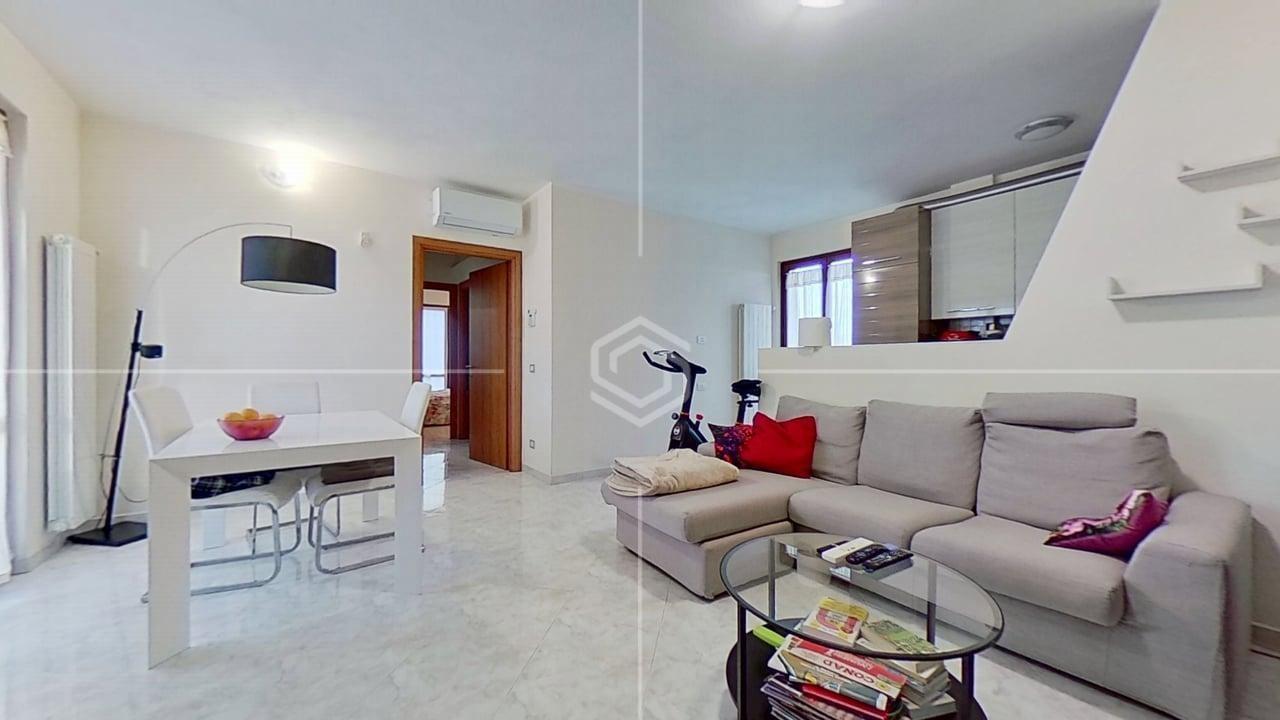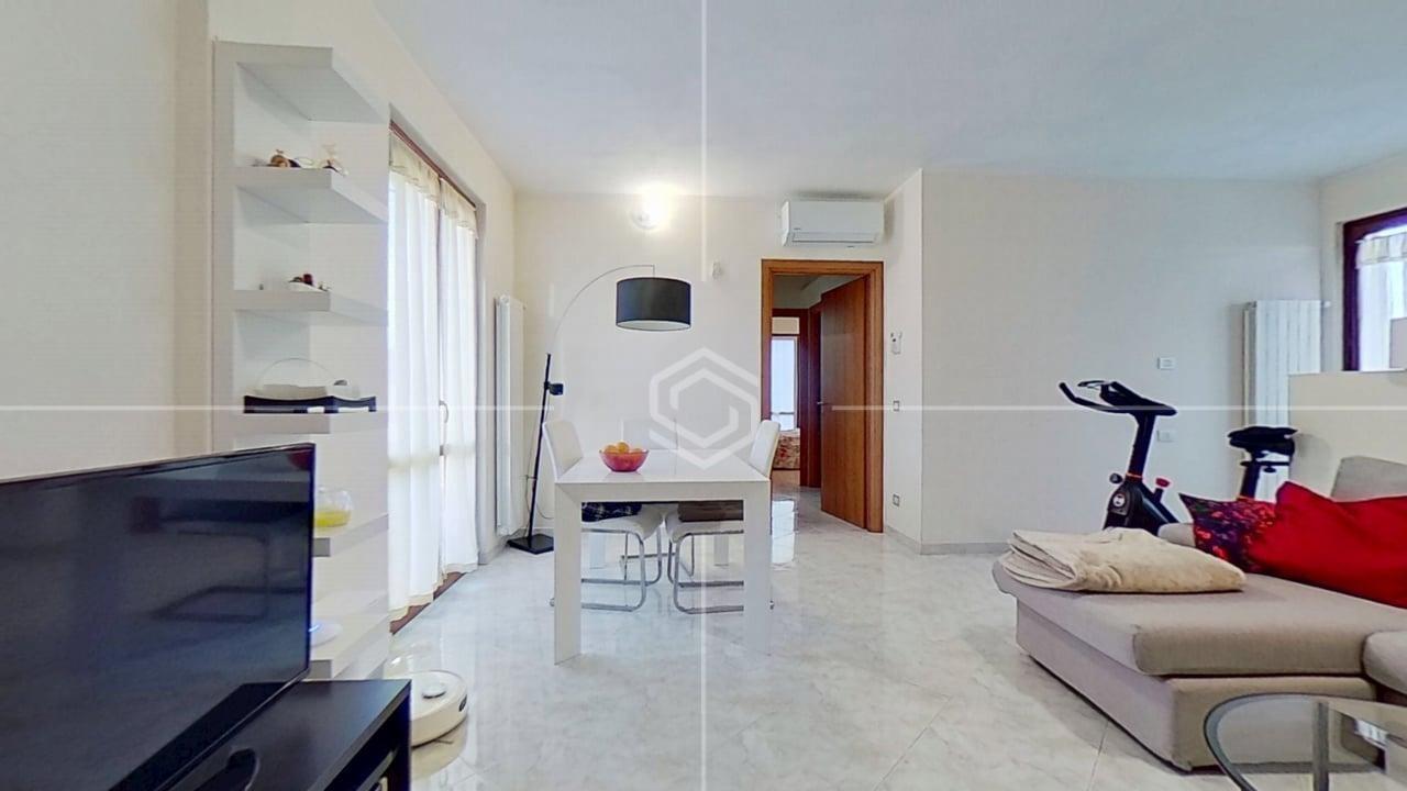 Varcando lingresso, si accede a un soggiorno ampio e accogliente, perfetto per momenti di relax o convivialità, arricchito da un balcone che dona luce naturale e continuità con lesterno.