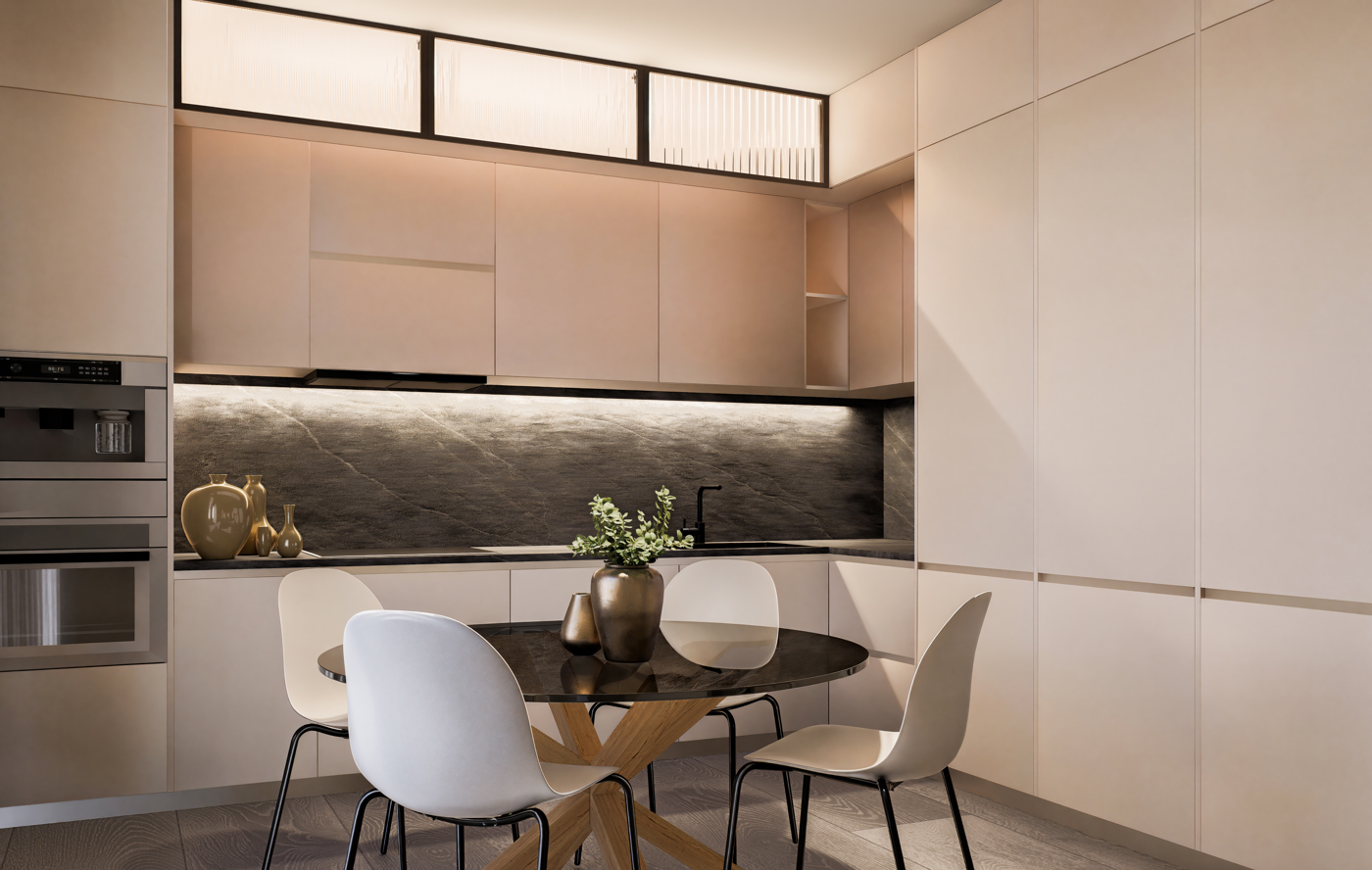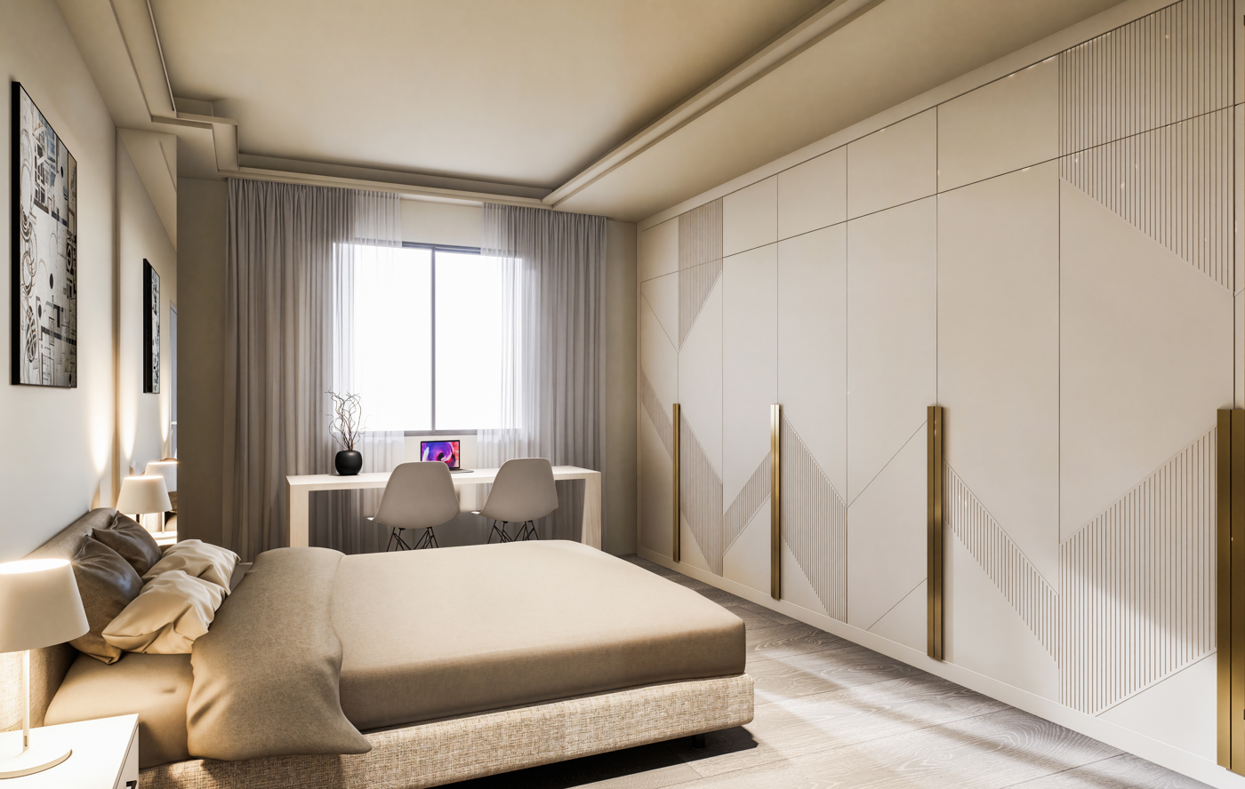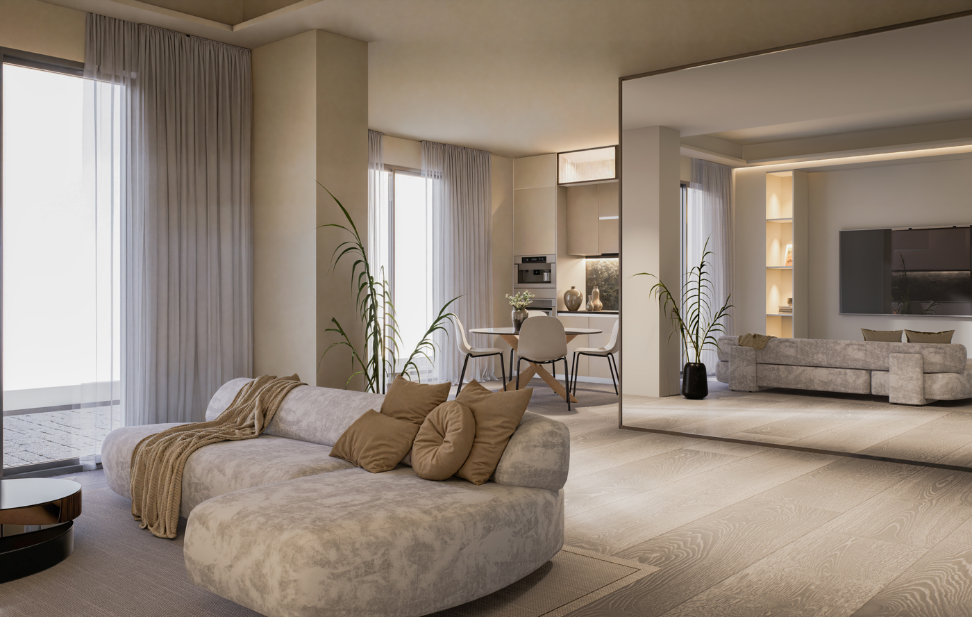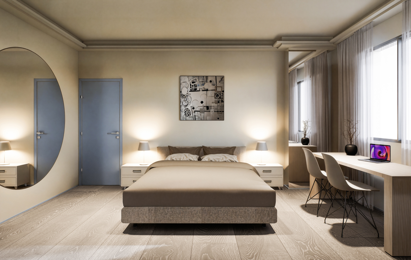 La soluzione si compone di una zona giorno con cucina a vista, due camere da letto, un bagno ed un ripostiglio utilizzabile in base alle proprie esigenze.