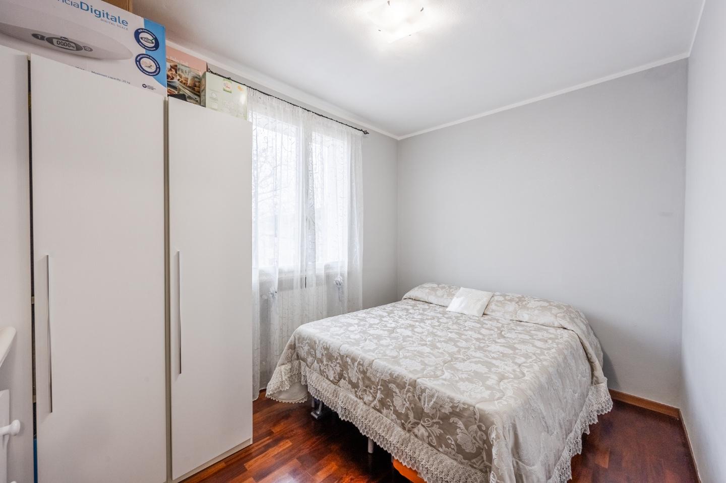 Un disimpegno accompagna alla zona notte del piano, dove troviamo una spaziosa camera matrimoniale e un bagno ben rifinito, pensato per garantire comfort e praticità nella vita quotidiana.