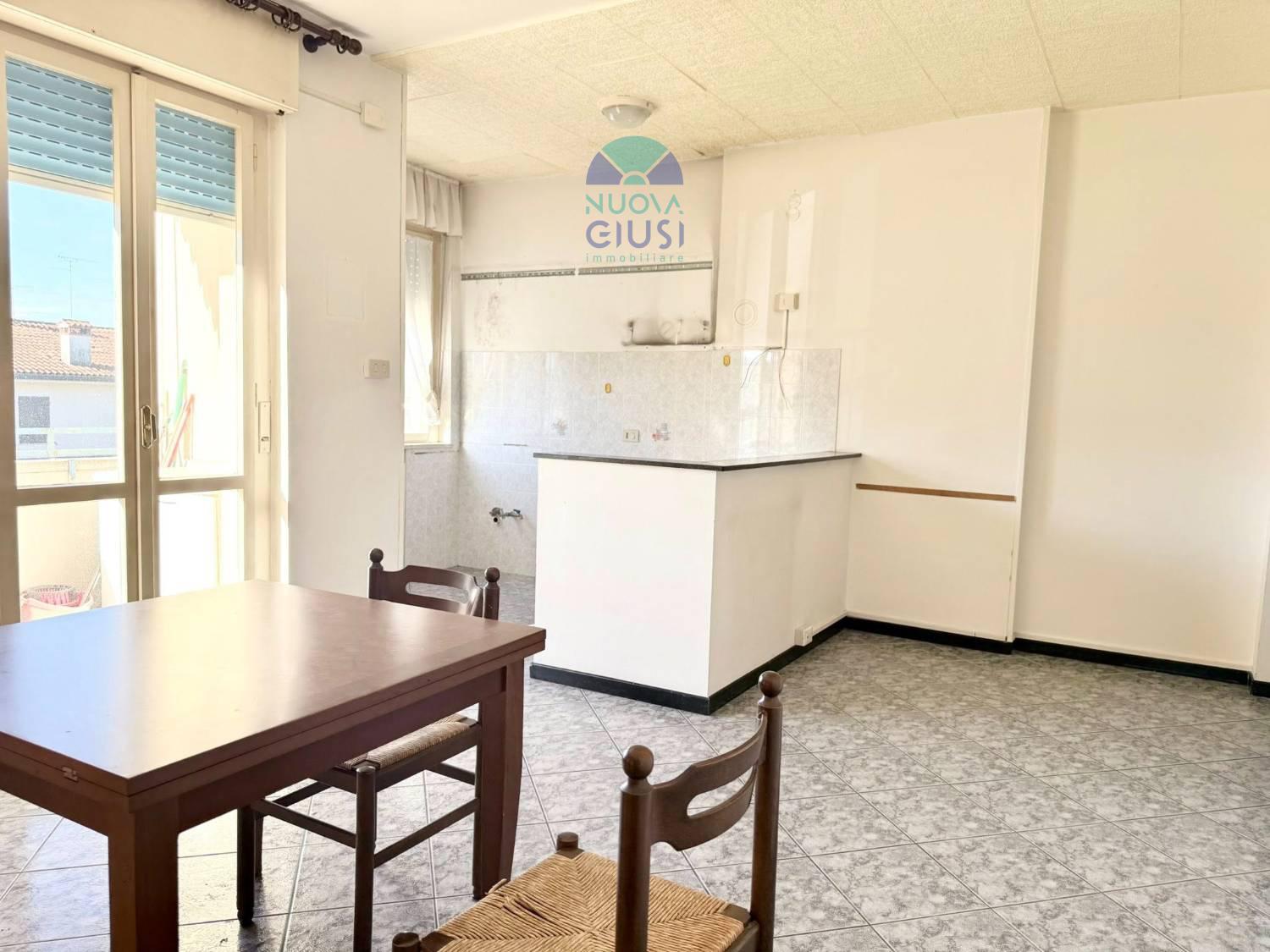 In contesto residenziale, ottimo bicamere sito al secondo piano, composto da ingresso, soggiorno/angolo cottura, terrazza, corridoio, ampio ripostiglio, due spaziose camere, bagno e garage.