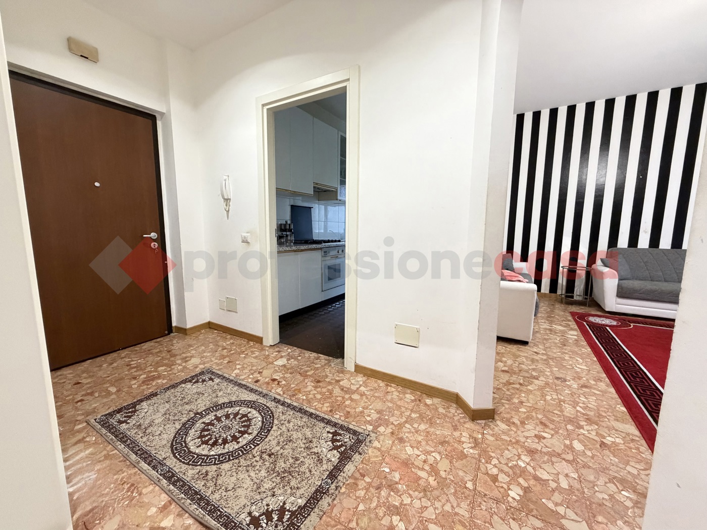 In contesto con ascensore, facciata in klinker, portineria e verde condominiale, 3 Locali posto in posizione angolare su tre lati, immobile internamente cos composto: Ingresso, cucina abitabile, soggiorno, disimpegno notte, due camere, ripostiglio, bagno, solaio.