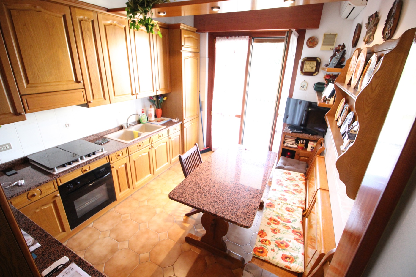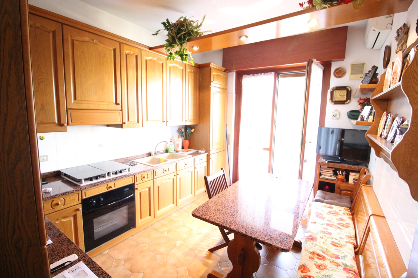 La soluzione composta da: ingresso in disimpegno ampio che divide gli ambienti con ampia cucina abitabile arredata su misura con accesso al terrazzo coperto di circa 20 mq su quale si affacci anche l'ampio soggiorno . la zona notte separata da un disimpegno con ripostiglio composta da doppi servizi entrambi finestrati, una camera matrimoniale con accesso al balcone molto ampio , tuna cameretta.