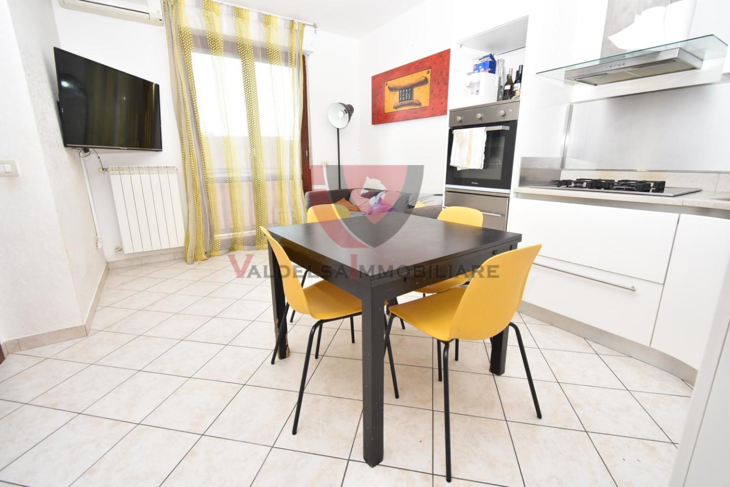 L'abitazione al piano secondo con ascensore, si compone di ingresso-soggiorno con angolo cottura, disimpegno, camera matrimoniale, camerina e bagno, oltre a due balconi.
