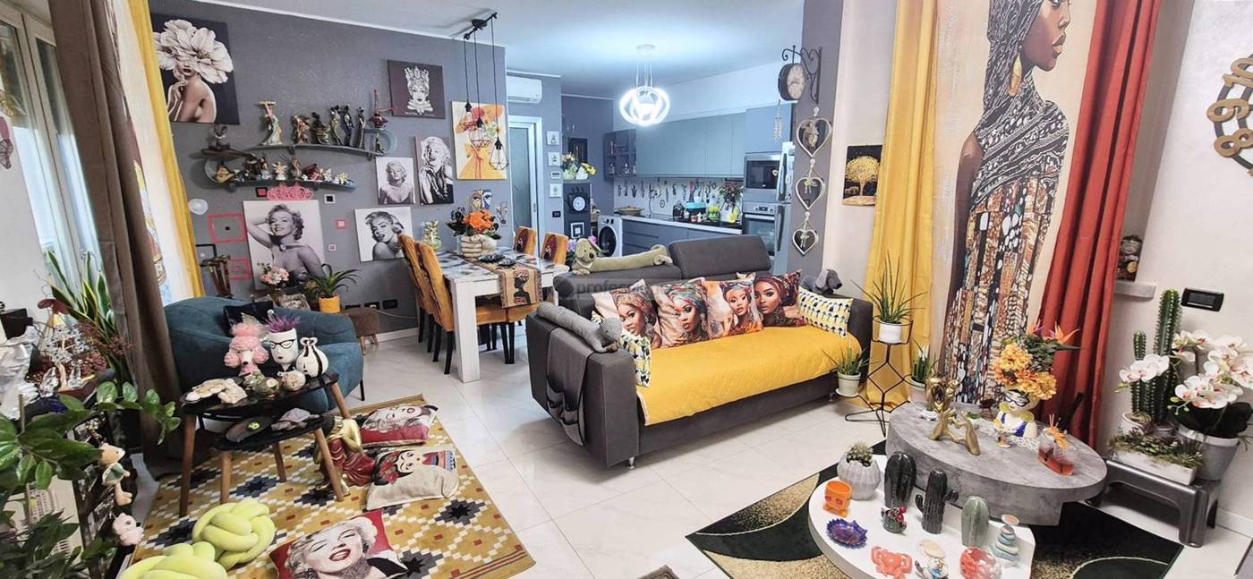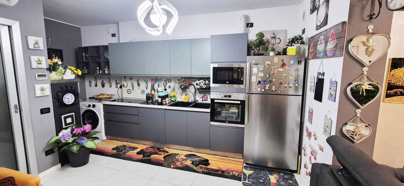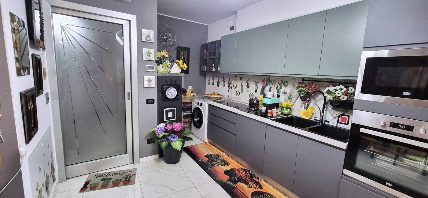 Tre locali di 85 mq. Zona living con ampio spazio dedicato alla cucina.