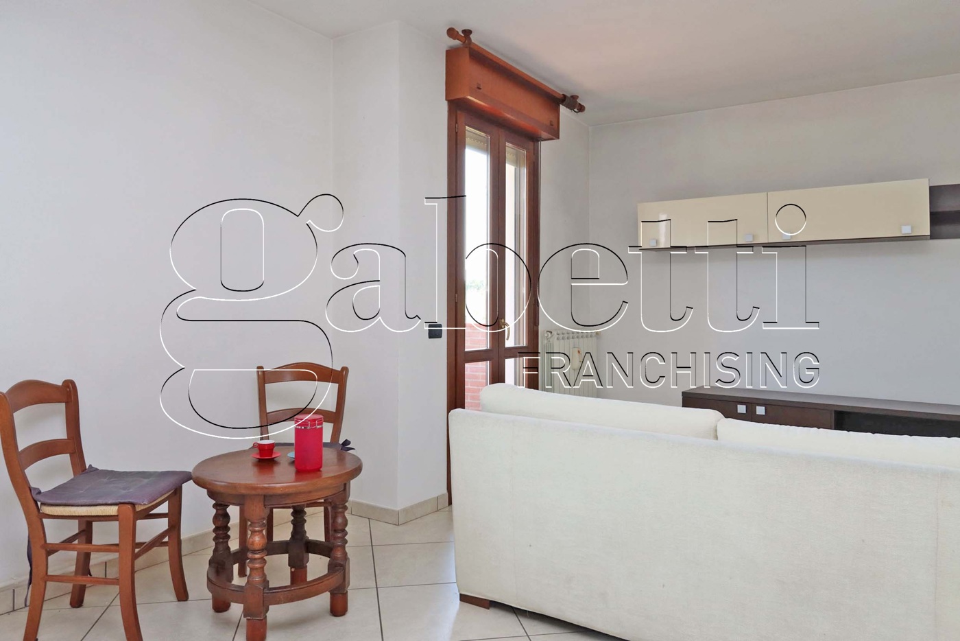 Limmobile composto da ingresso su sala con angolo cottura e balcone, disimpegno nella zona notte, bagno finestrato, camera da letto matrimoniale e camera da letto singola.