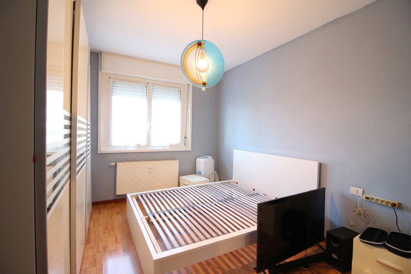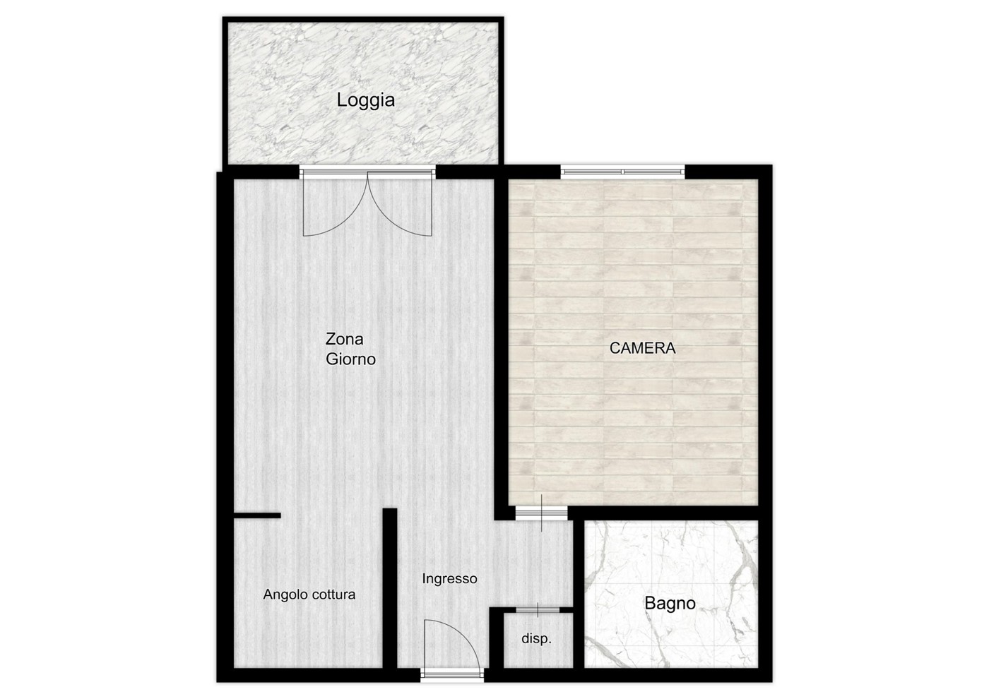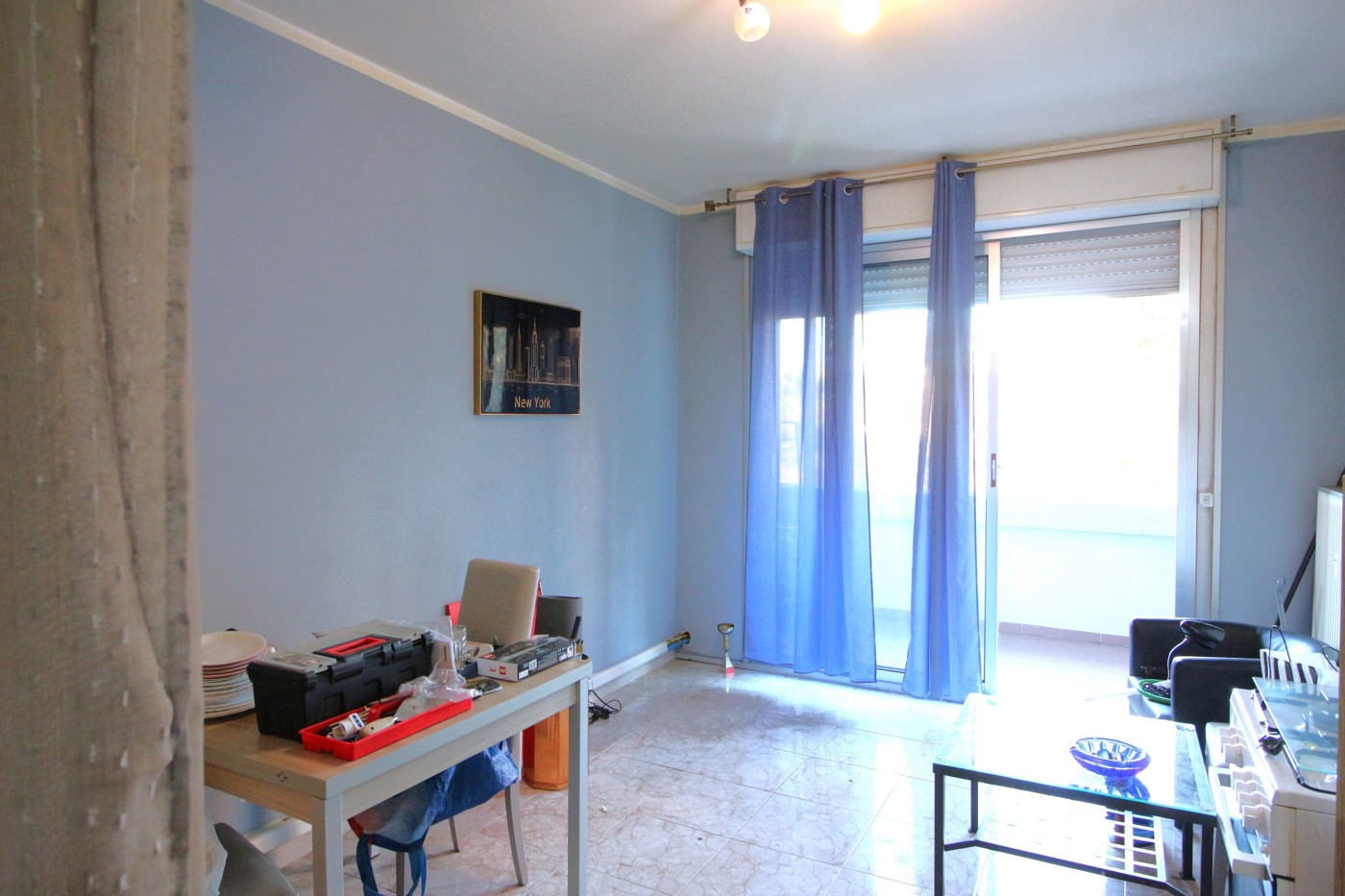 L'immobile, esposto a sud, composto da: ingresso, zona giorno con sala e tinello da cui si accede alla loggia, camera matrimoniale, bagno e dispensa.