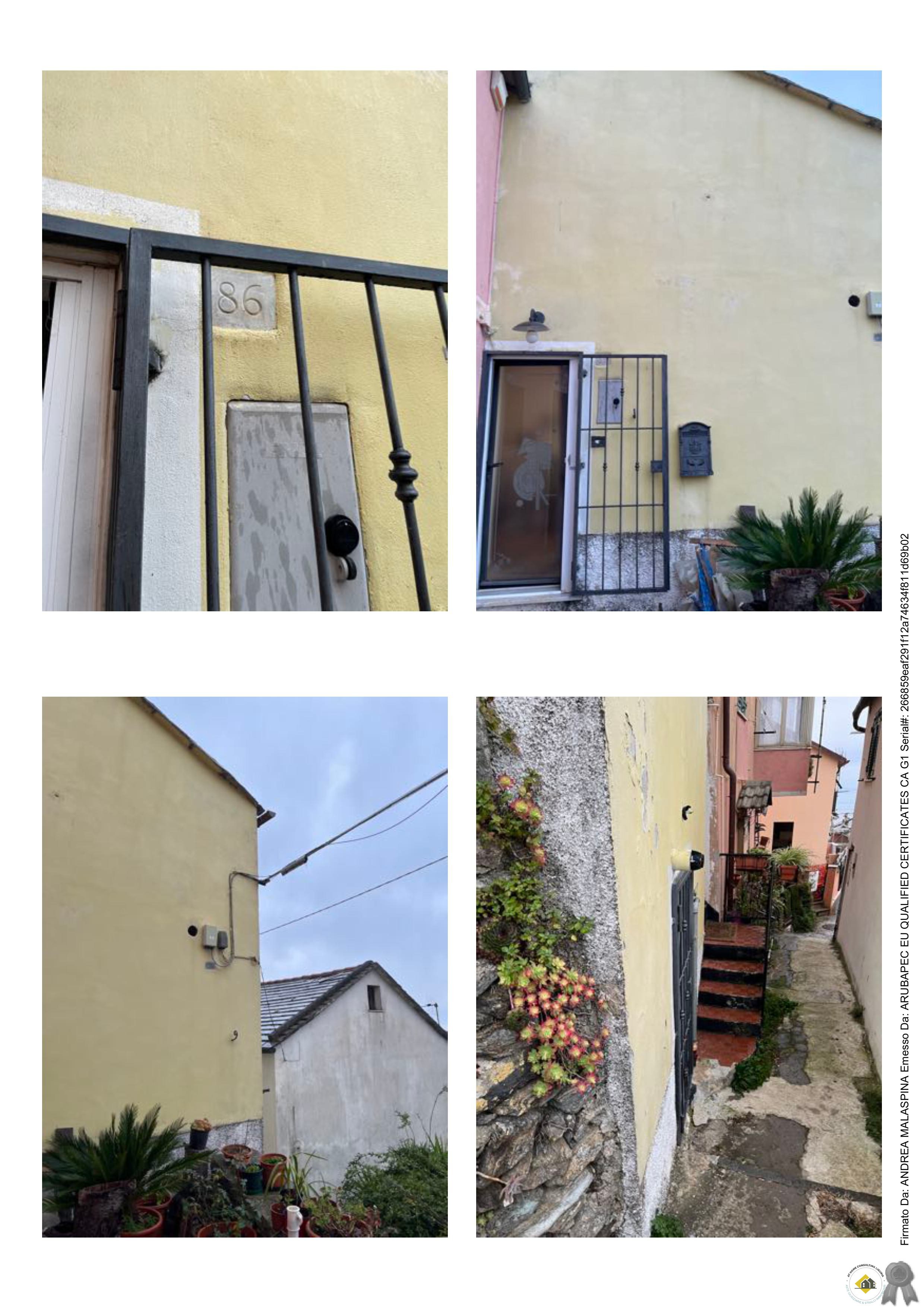questa villetta a schiera si trova a genova, nella tranquilla delegazione di crevari, in via piazzagrande 86. l'immobile si sviluppa su tre piani, offrendo una superficie complessiva di circa 132 mq. al piano seminterrato si trova un locale caldaia con un wc, mentre al piano terra è presente un angolo cottura e un soggiorno.