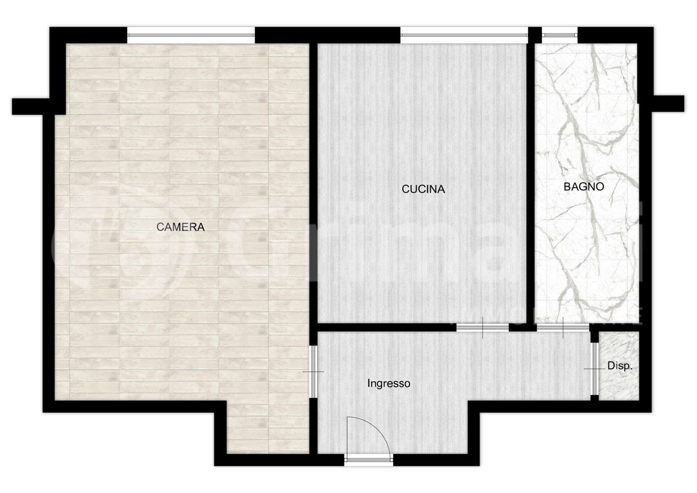 L'immobile, posto al secondo piano, composto da: ingresso, cucina abitabile, camera matrimoniale, bagno.