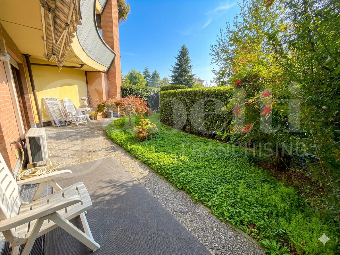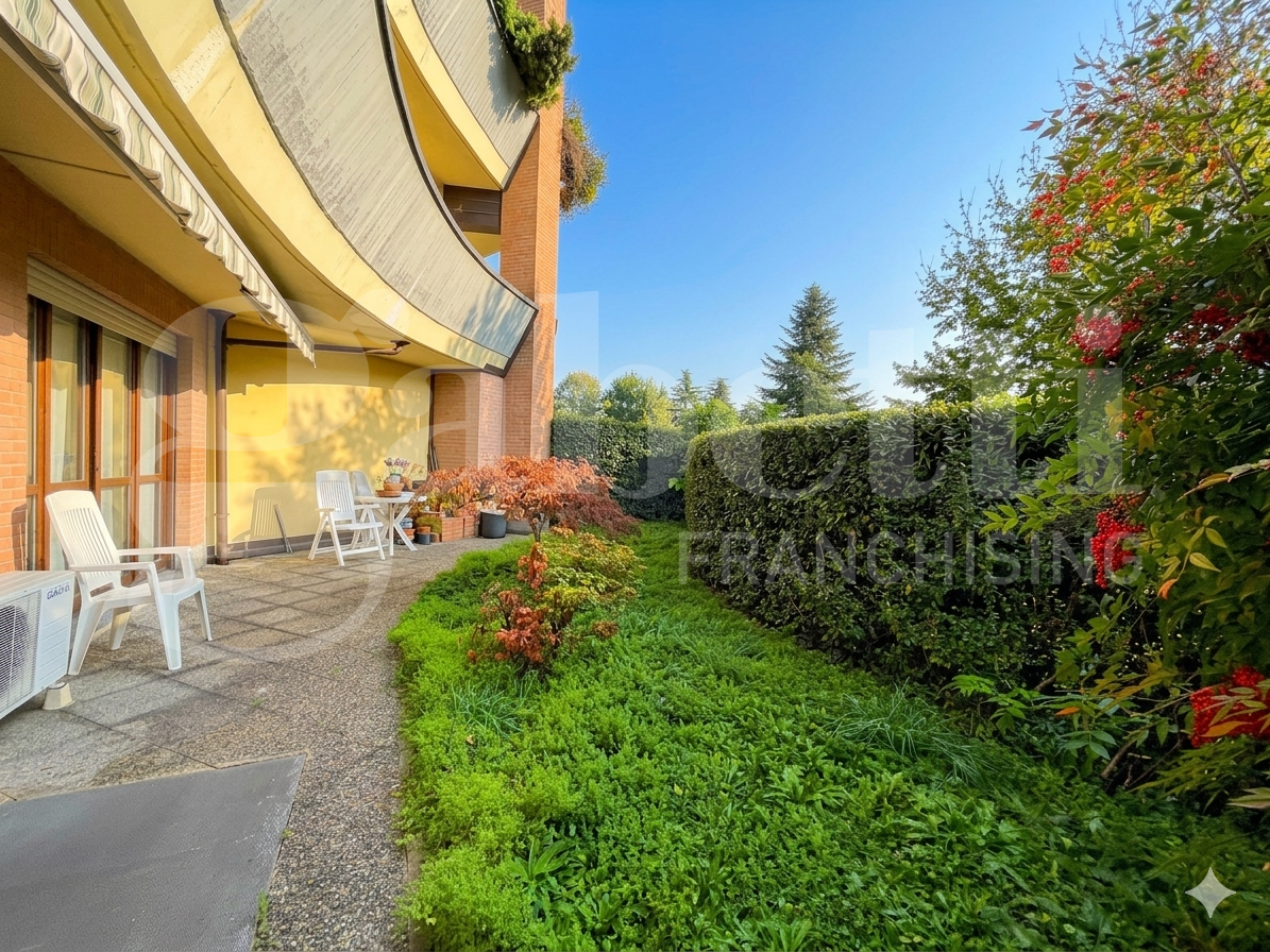 ESCLUSIVO TRILOCALE CON GIARDINO PRIVATO E DOPPI SERVIZI, BOX E CANTINA.