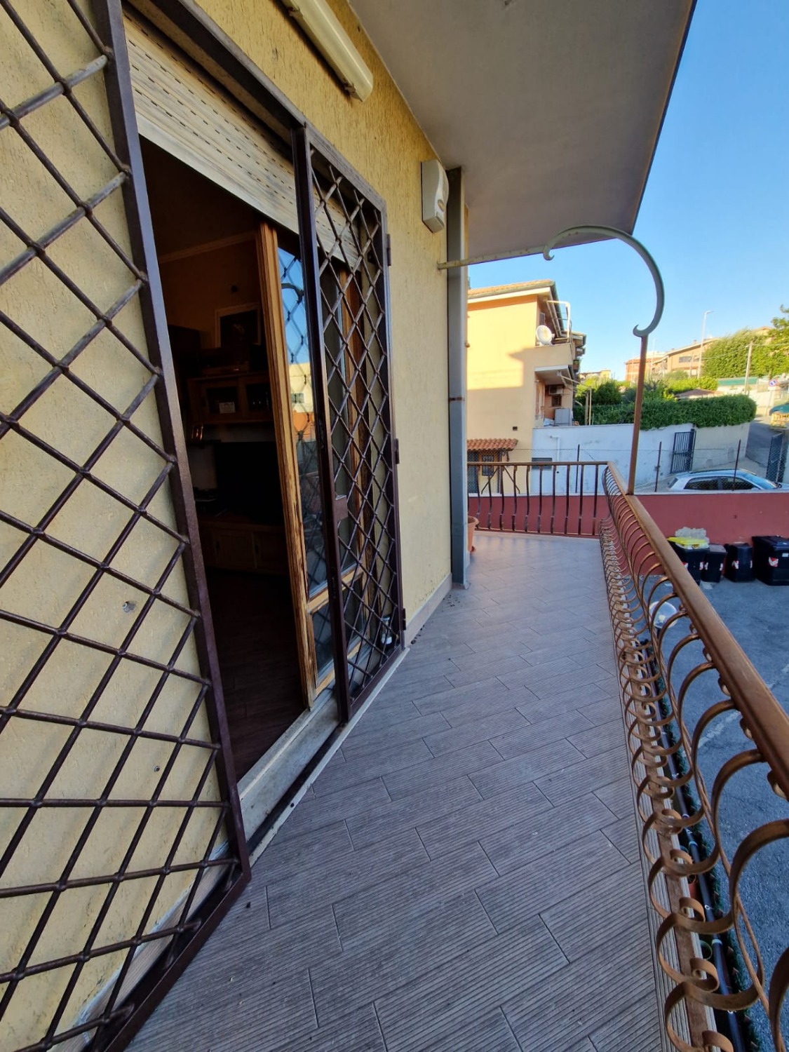MARINO - Santa Maria delle Mole - Via Giacomo Leopardi Trattiamo la vendita di un appartamento posto al primo piano in contesto tranquillo e verdeggiante (vicino al parco dell'appia antica) disposto su unico livello di 110 mq composto da ampio salone, cucina separata con ampia finestra, comodo disimpegno dove è facilmente ricavabile un ripostiglio o un piccola zona studio, due comode camere, doppi servizi di cui uno con finestra e doccia e un ampio balcone di 14 mq. Riscaldamento autonomo, aria condizionata nel salone e nelle camere, grate di sicurezza e posto auto di proprietà nella corte condominiale.