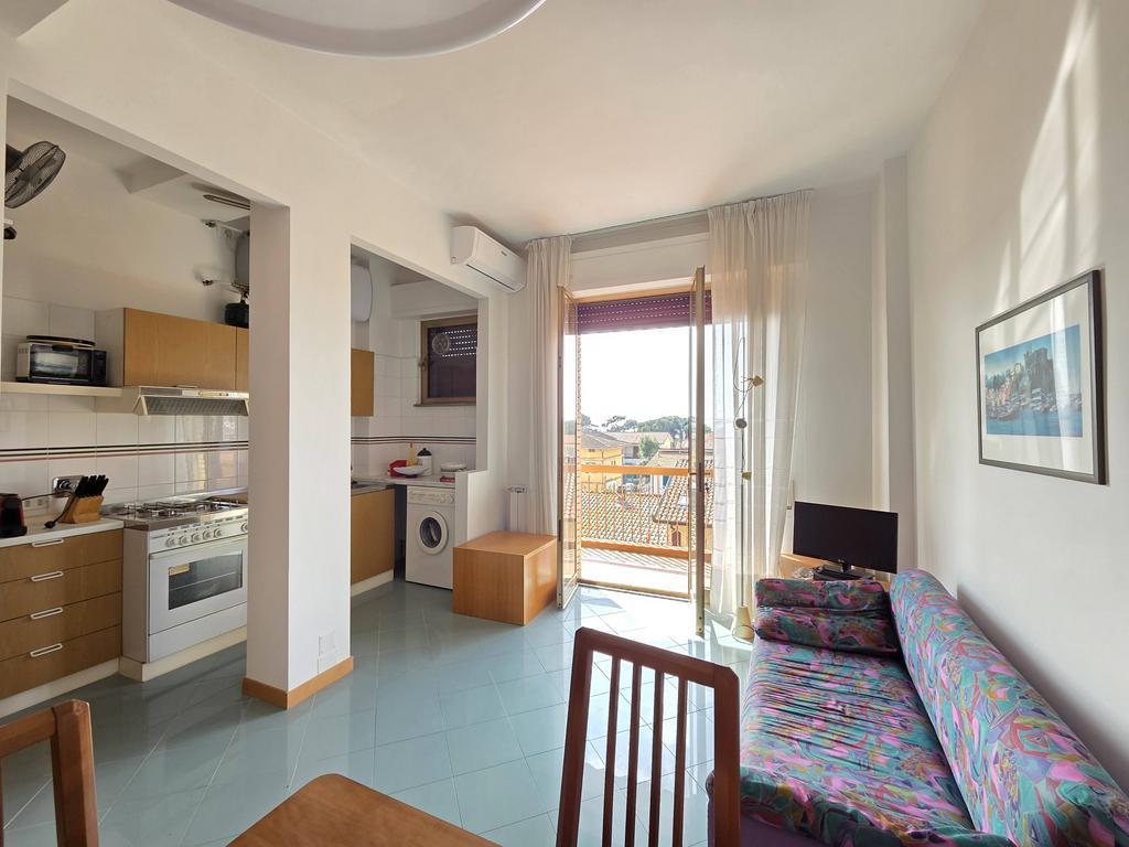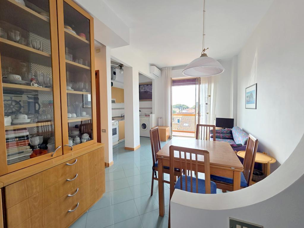Dotato di una superficie perfetta per comode vacanze e non troppo impegnativa da mantenere, l'appartamento si sviluppa in un ambiente luminoso con cucina a vista, ampia balconata sufficientemente profonda per allestire pranzi all'aperto con VISTA MARE, reparto notte con due camere, ripostiglio e bagno con doccia e finestra.
