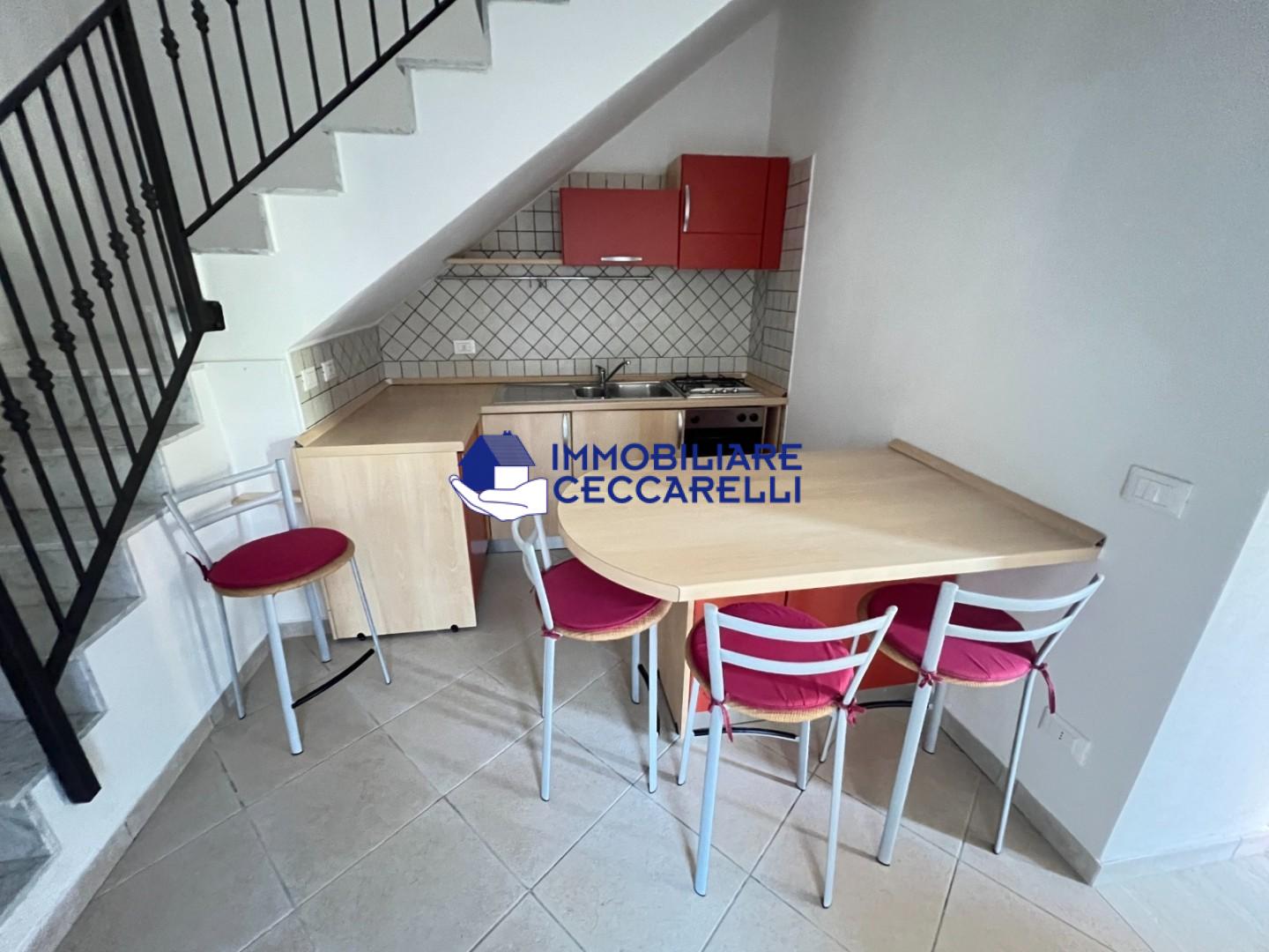 Limmobile si compone di ingresso su cucinotto, soggiorno con secondo accesso indipendente al piano terra; al piano primo si trova unampia camera matrimoniale e un bagno con doccia.