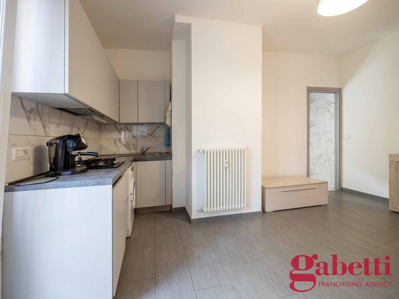 L'appartamento, libero al rogito, si compone di un ingresso, soggiorno con cucina a vista, camera matrimoniale, studio e bagno finestrato.