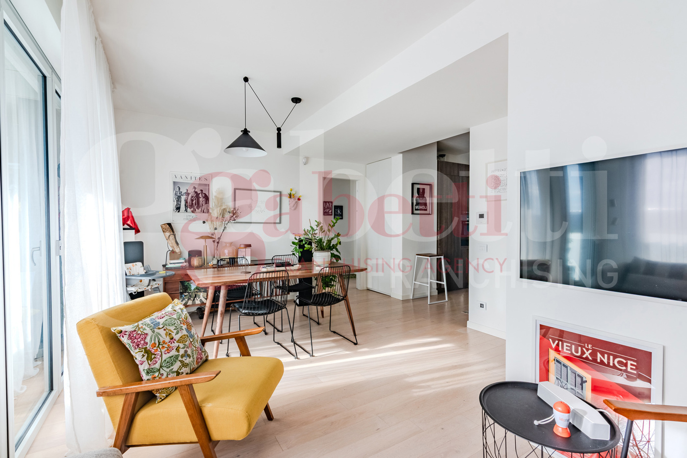 La cucina a vista, adiacente alla sala, d accesso al secondo terrazzo a loggia di 20mq dotato di tenda elettrica e affaccio sul giardino condominiale ideale per aperitivi e cene allaperto in tutti i periodi dellanno.