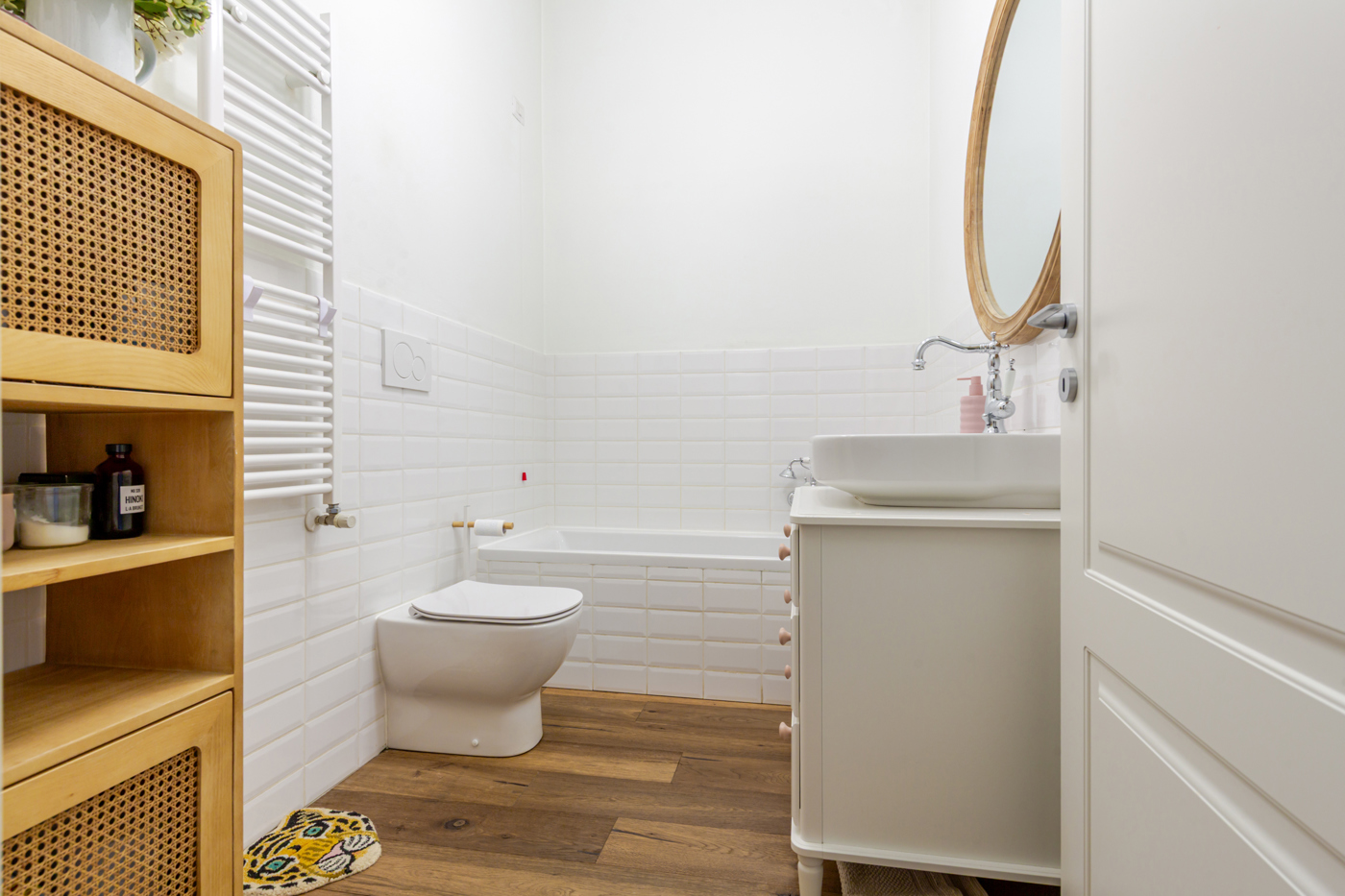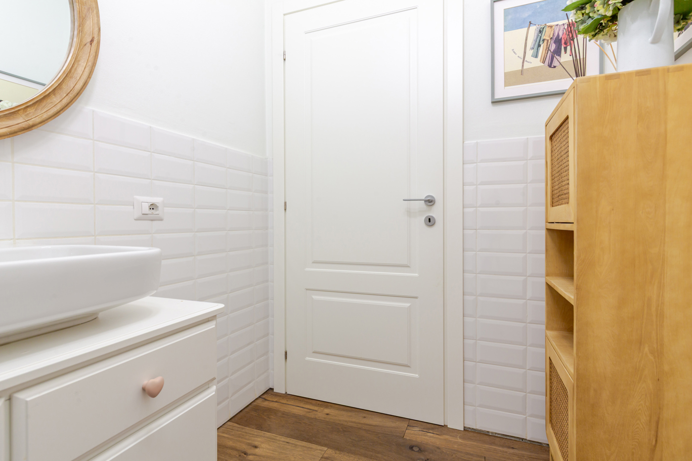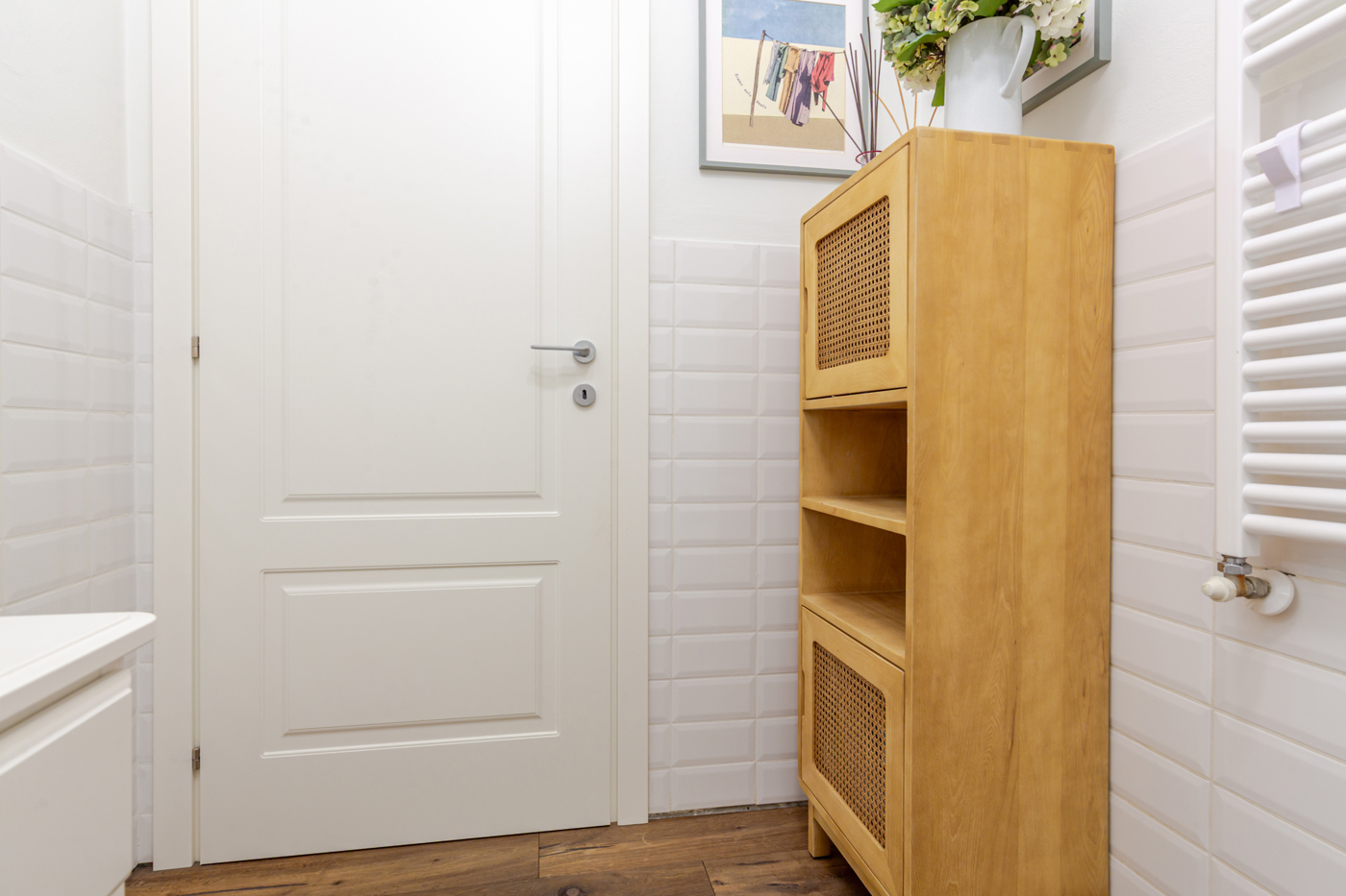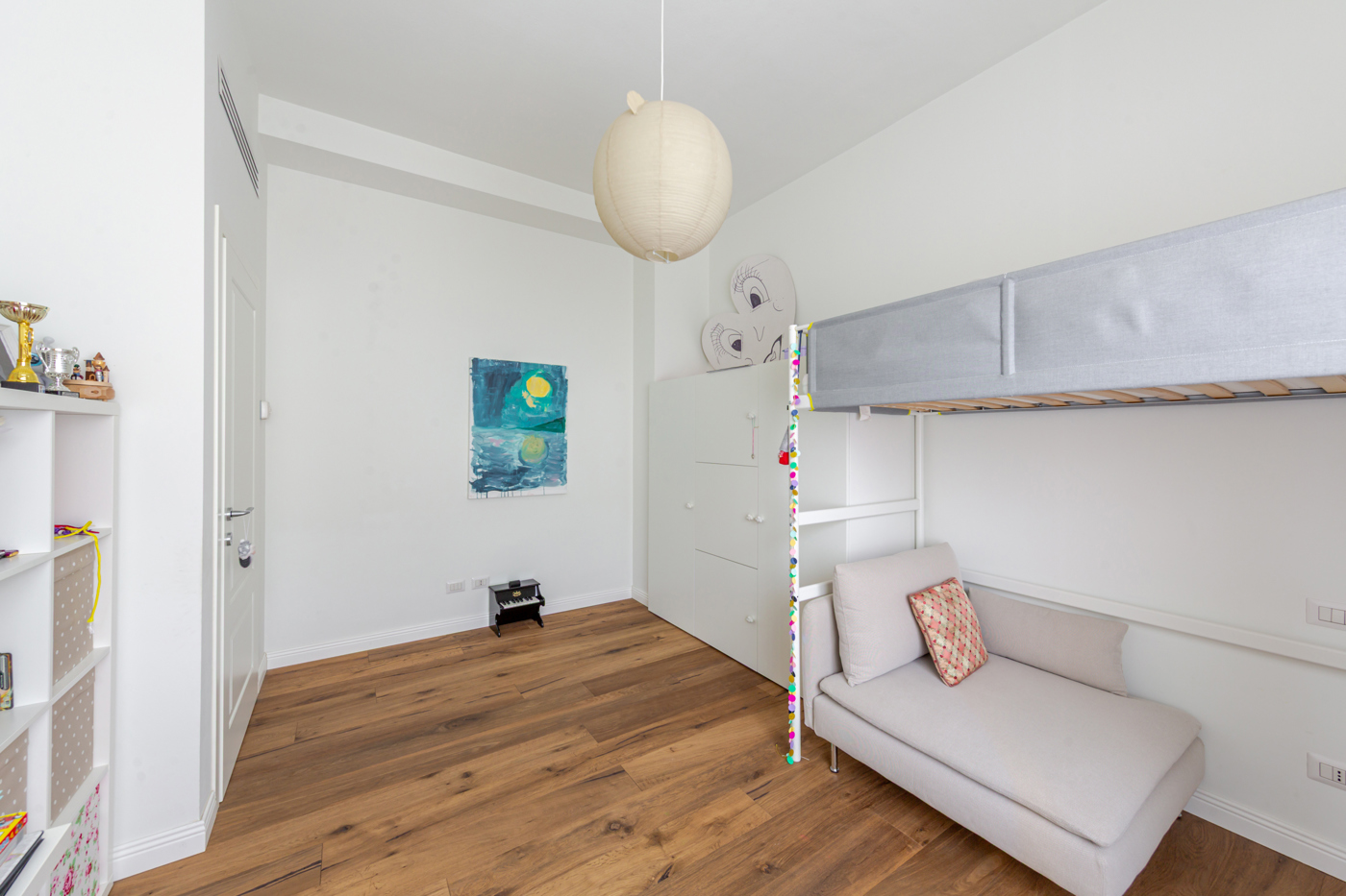 Limmobile, ristrutturato nel 2020, presenta le seguenti finiture: porta blindata, video citofono, pavimentazione in parquet, infissi con doppi vetri, aria condizionata canalizzata e riscaldamento centralizzato, sanitari sospesi e scalda salviette nei bagni.
