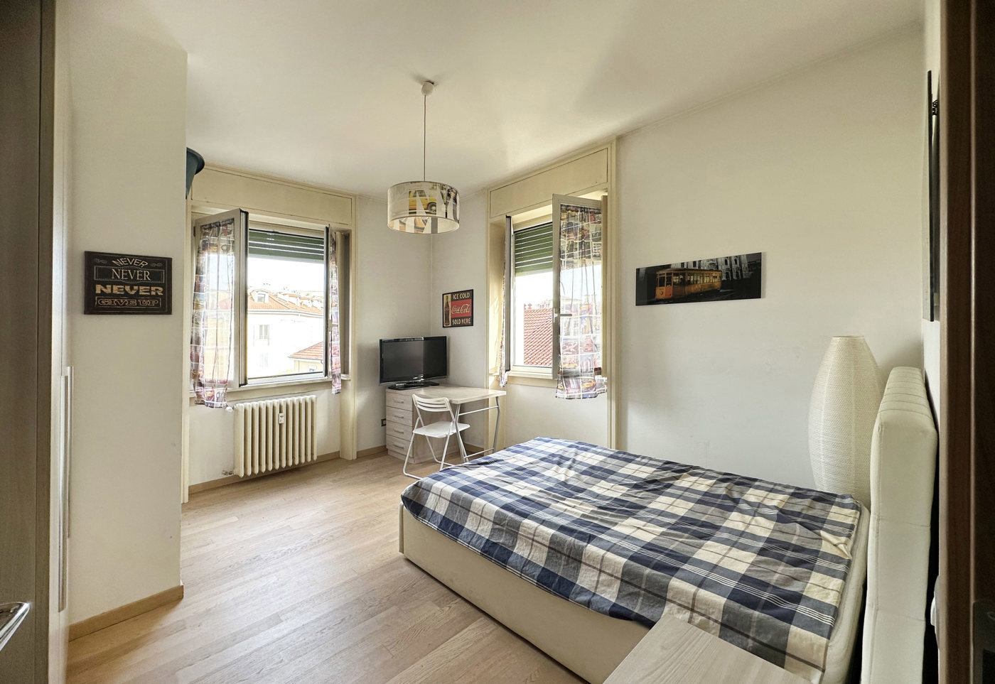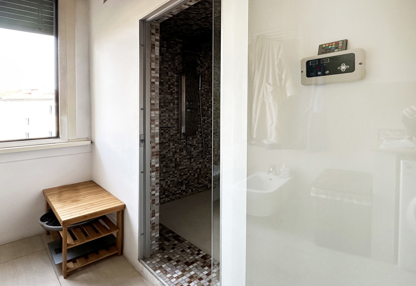 Il disimpegno ci conduce nella zona notte che caratterizzata da due ampie camere da letto, di cui la singola con affaccio angolare con doppia finestra mentre la matrimoniale con una finestra e accesso esclusivo al secondo balcone, infine un confortevole bagno che al suo interno ospita una fantastica doccia incassata a muro, molto spaziosa e con uno stile che ricorda i "bagni termali" dotata di un impianto che gestisce la funzione di bagno turco.