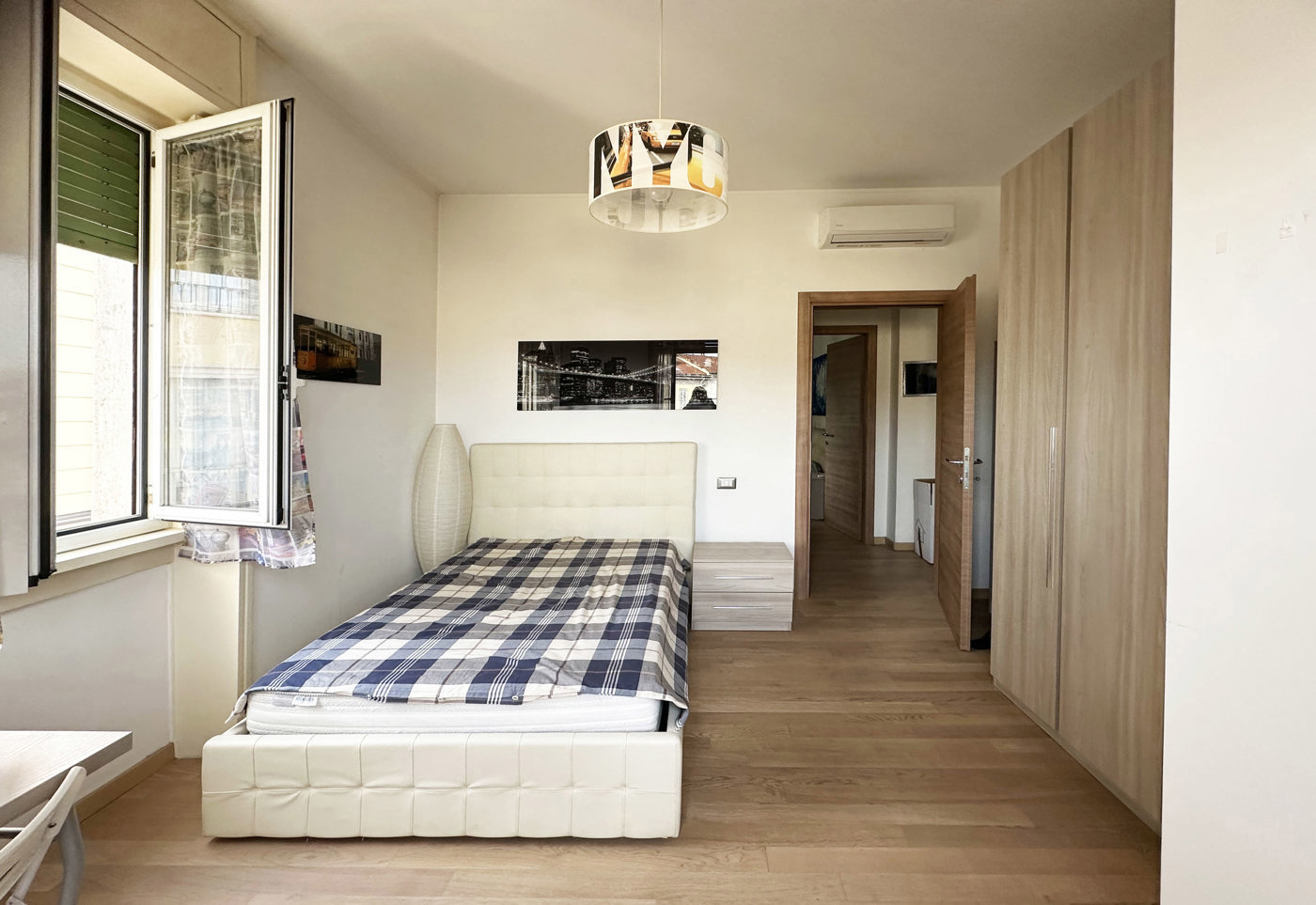 Le moderne porte interne in legno conferiscono un tocco di raffinatezza agli ambienti, mentre il sistema di aria condizionata assicura il massimo benessere in ogni stagione.