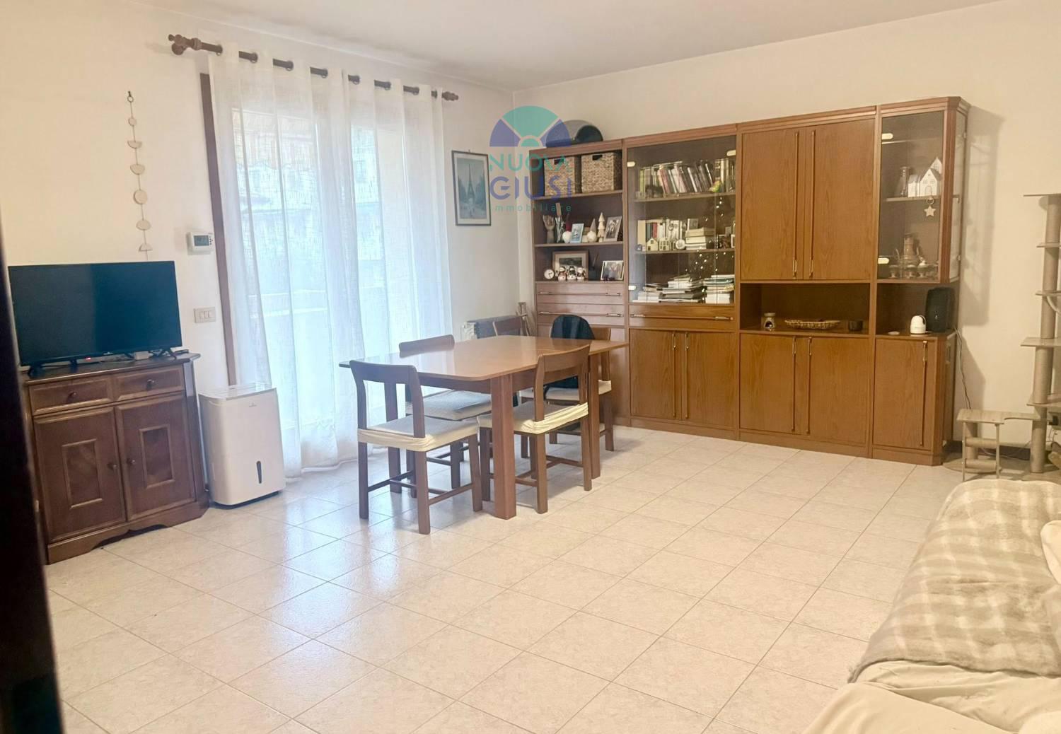 In palazzina di met anni 90, perfetto appartamento sito al primo piano, composto da ingresso, ampia zona giorno con cucina, sala pranzo e soggiorno, grande ripostiglio, due spaziose terrazze, bagno, due camere e garage.