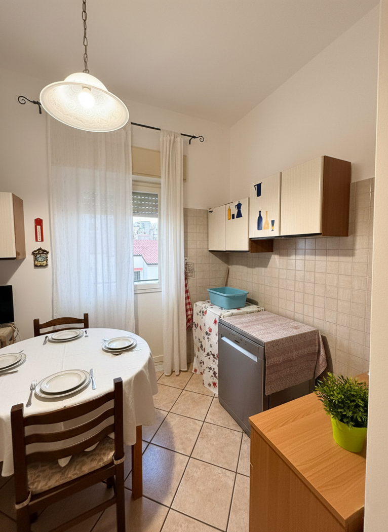 L'immobile si apre su un ampio ingresso che separa la cucina abitabile con balcone e veranda dalla luminosa sala da pranzo, anch'essa con balcone.