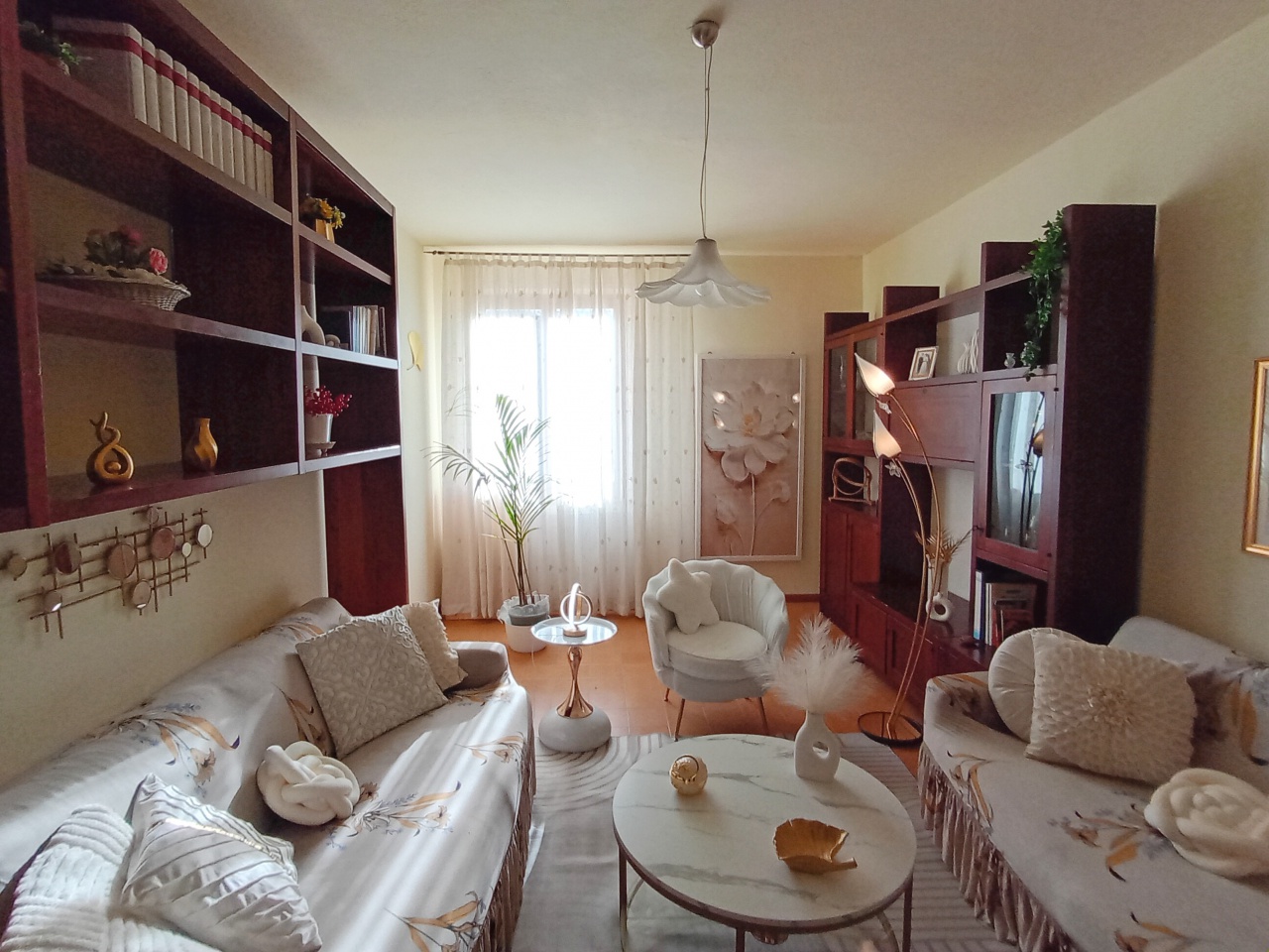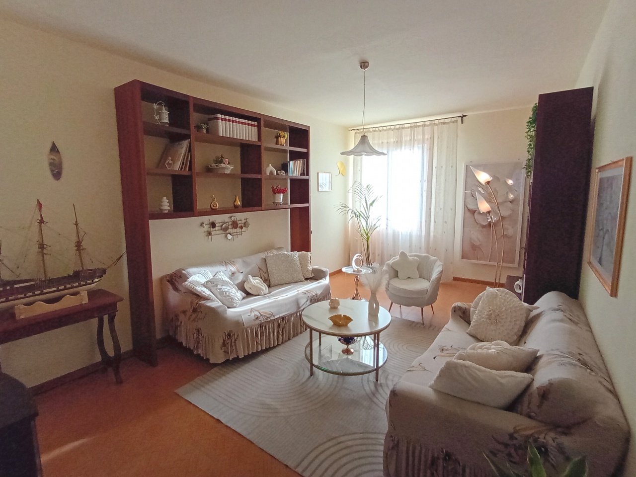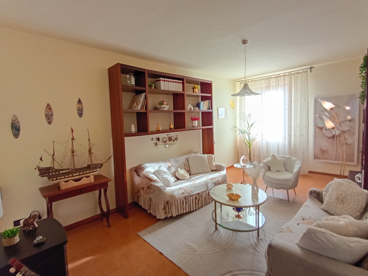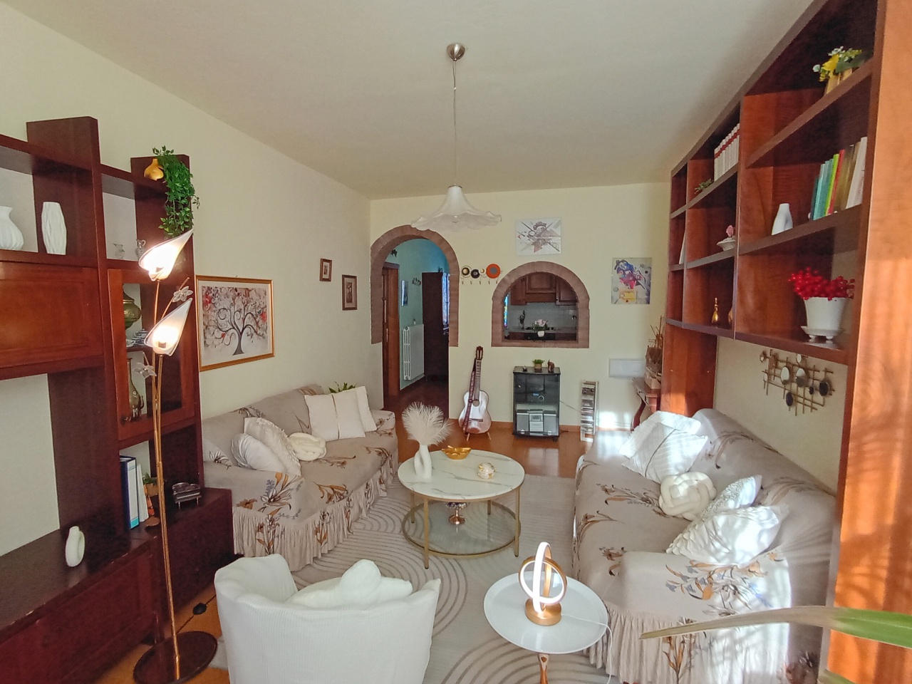 Composto da cucina-pranzo, soggiorno molto luminoso, disimpegno, grande camera matrimoniale, studio, bagno con doccia e finestra.